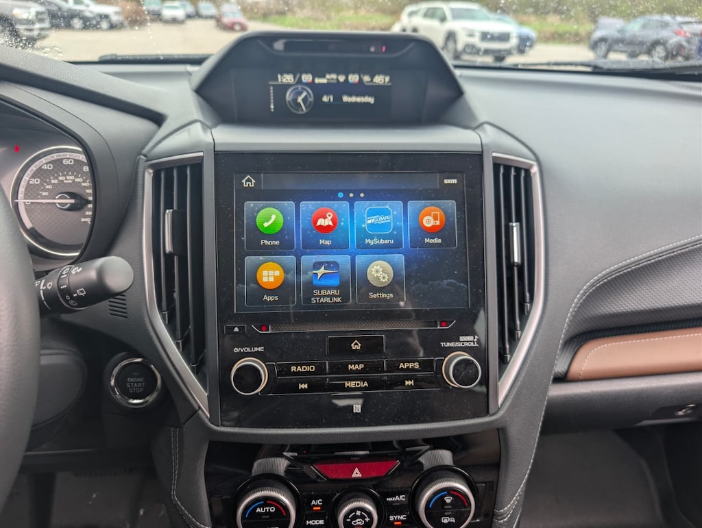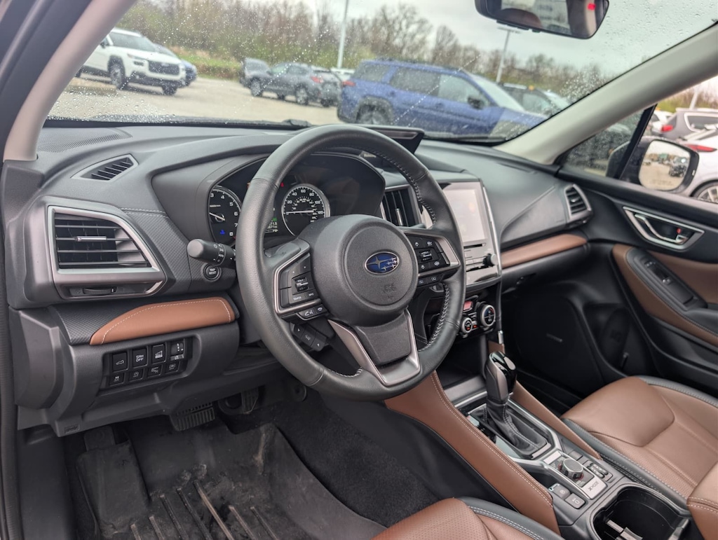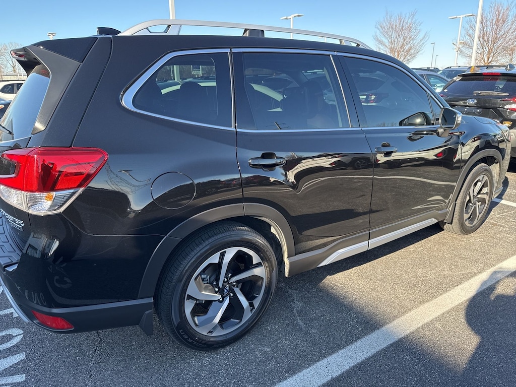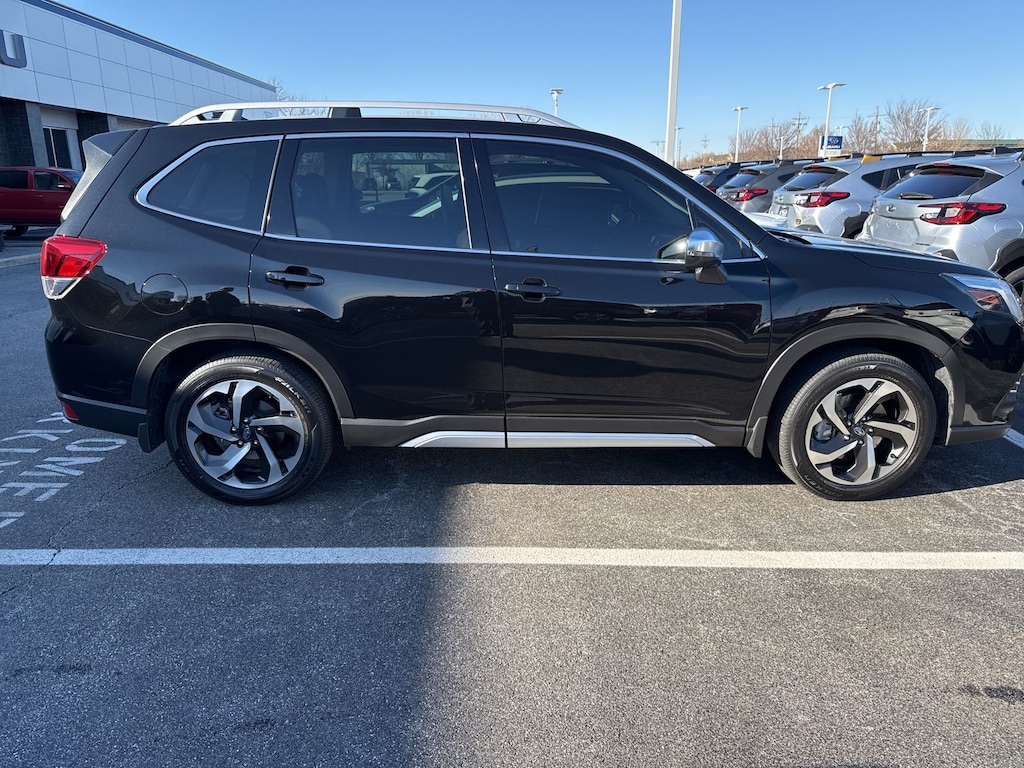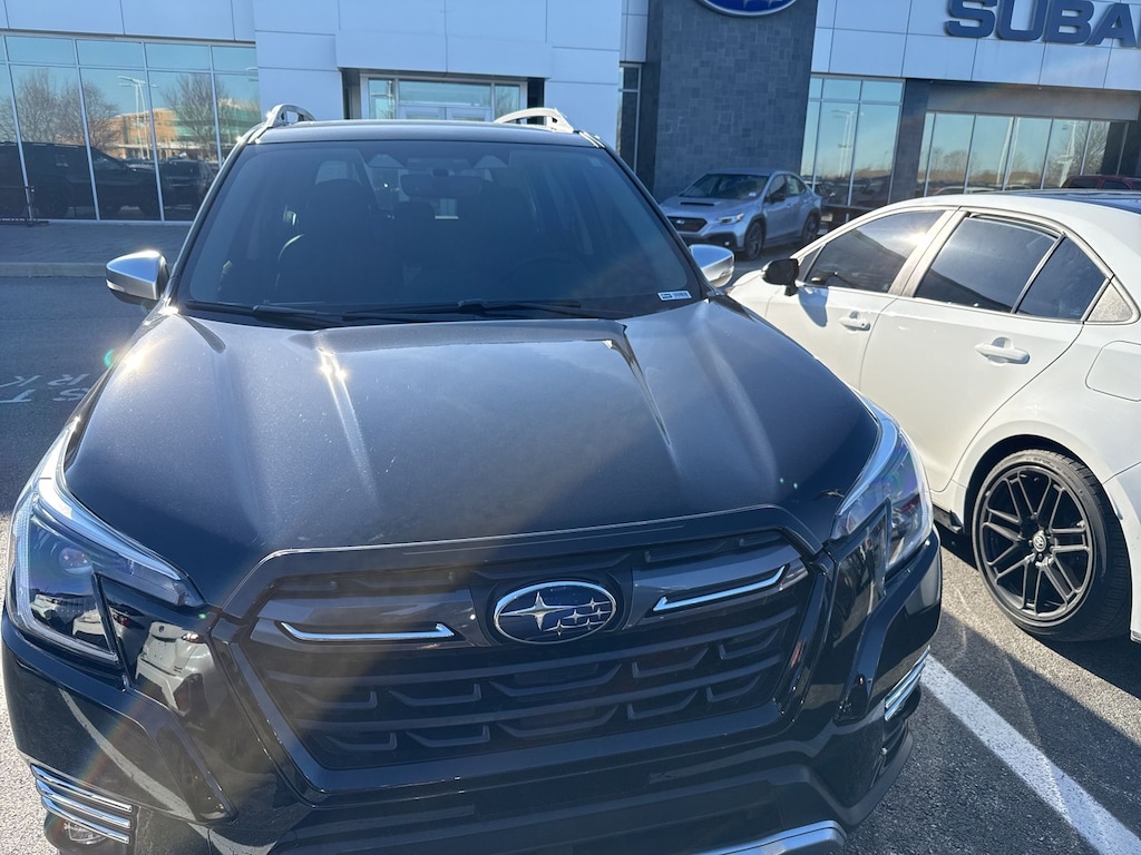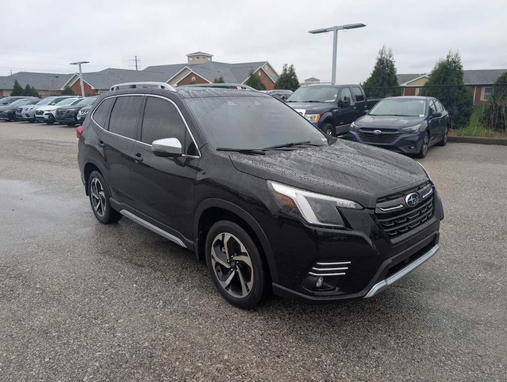 Recent Arrival! 2022 Subaru Certified. Crystal Black Silica AWD Forester Touring Lineartronic CVT Odometer is 23897 miles below market average! Standard Model, 3.70 Axle Ratio, 4-Wheel Disc Brakes, 9 Speakers, ABS brakes, Aero Crossbar Set, Air Conditioning, All-Weather Floor Liners, Alloy wheels, AM/FM radio: SiriusXM, Anti-whiplash front head restraints, Auto High-beam Headlights, Auto-Dimming Exterior Mirror w/Approach Lighting, Auto-Dimming Mirror w/Compass & HomeLink, Automatic temperature control, Brake assist, Bumpers: body-color, Cargo Net, CD player, Driver door bin, Driver vanity mirror, Dual front impact airbags, Dual front side impact airbags, Electronic Stability Control, Emergency communication system: STARLINK Safety and Security (Subscription Required), Exterior Parking Camera Rear, Four wheel independent suspension, Front anti-roll bar, Front Bucket Seats, Front Center Armrest, Front dual zone A/C, Front fog lights, Front reading lights, Fully automatic headlights, harman/kardon 576W Amp & Speaker System, harman/kardon® Speakers, Heated door mirrors, Heated Front Bucket Seats, Heated front seats, Heated rear seats, Heated steering wheel, HVAC memory, Illuminated entry, Knee airbag, Leather Shift Knob, Low tire pressure warning, Memory seat, Navigation System, Occupant sensing airbag, Outside temperature display, Overhead airbag, Overhead console, Panic alarm, Passenger door bin, Passenger vanity mirror, Perforated Leather-Trimmed Upholstery, Power door mirrors, Power driver seat, Power Liftgate, Power moonroof: Panoramic, Power passenger seat, Power steering, Power windows, Premium audio system: harman/kardon, Radio data system, Radio: Subaru Starlink 8.0" Multimedia Nav System, Rear anti-roll bar, Rear seat center armrest, Rear Seatback Protector, Rear window defroster, Rear window wiper, Remote keyless entry, Roof rack: rails only, Security system, Speed control, Speed-sensing steering, Splash Guards, Split folding rear seat, Spoiler, STARLINK/Apple CarPlay/Android Auto, Steering wheel mounted audio controls, Tachometer, Telescoping steering wheel, Tilt steering wheel, Traction control, Trip computer, Turn signal indicator mirrors, Variably intermittent wipers, and Wheels: 18" x 7.0J Dark Gray Machine Finish Alloy.