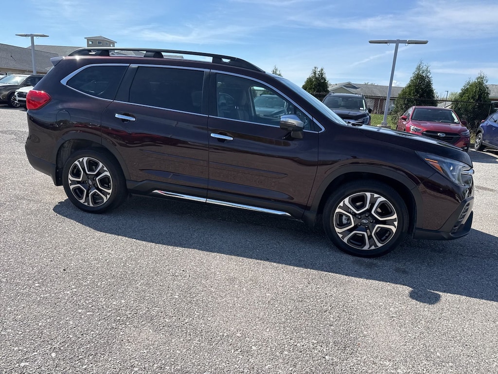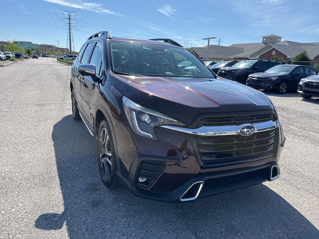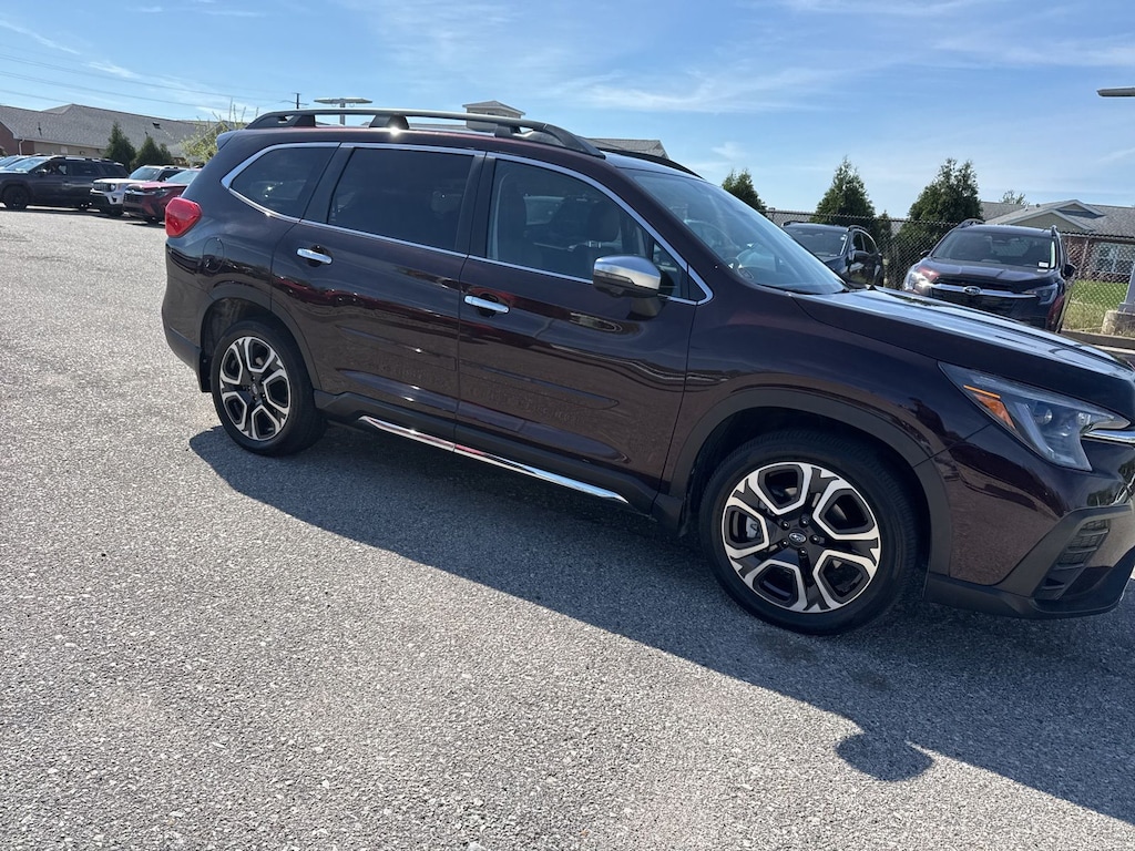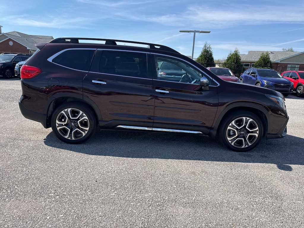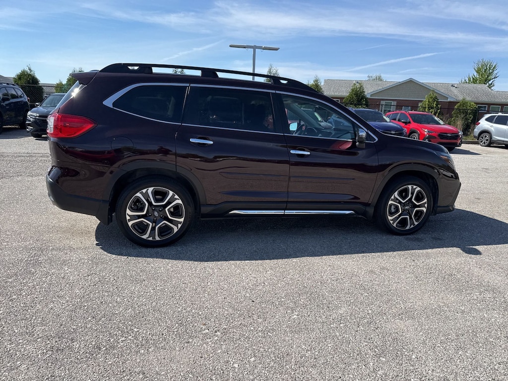 Recent Arrival! 2023 Subaru Certified. Mahogany Pearl AWD Ascent Touring Lineartronic CVT Odometer is 3906 miles below market average! 14 Speakers, 3rd row seats: bench, 4-Wheel Disc Brakes, ABS brakes, Air Conditioning, Alloy wheels, AM/FM radio: SiriusXM, Auto High-beam Headlights, Auto-dimming Rear-View mirror, Automatic temperature control, Axle Ratio: 4.44, Brake assist, Bumpers: body-color, Compass, Delay-off headlights, Driver door bin, Driver vanity mirror, Dual front impact airbags, Dual front side impact airbags, Electronic Stability Control, Emergency communication system: STARLINK Safety and Security (Subscription Required), Four wheel independent suspension, Front anti-roll bar, Front Bucket Seats, Front Center Armrest, Front dual zone A/C, Front fog lights, Front reading lights, Fully automatic headlights, Garage door transmitter: HomeLink, harman/kardon® Speakers, Heated & Ventilated Front Bucket Seats, Heated door mirrors, Heated front seats, Heated rear seats, Heated steering wheel, HVAC memory, Illuminated entry, Knee airbag, Leather Shift Knob, Leather steering wheel, Low tire pressure warning, Memory seat, Navigation System, Occupant sensing airbag, Outside temperature display, Overhead airbag, Overhead console, Panic alarm, Passenger door bin, Passenger vanity mirror, Perforated Nappa Leather-Trimmed Upholstery, Power door mirrors, Power driver seat, Power Liftgate, Power moonroof, Power passenger seat, Power steering, Power windows, Radio data system, Radio: Subaru STARLINK 11.6" Multimedia Nav System, Rain sensing wipers, Rear air conditioning, Rear anti-roll bar, Rear reading lights, Rear window defroster, Rear window wiper, Reclining 3rd row seat, Remote keyless entry, Security system, Speed control, Speed-sensing steering, Split folding rear seat, Spoiler, STARLINK/Apple CarPlay/Android Auto, Steering wheel mounted audio controls, Tachometer, Telescoping steering wheel, Tilt steering wheel, Traction control, Trip computer, Turn signal indicator mirrors, Variably intermittent wipers, Ventilated front seats, and Wheels: 20" x 7.5 J Dk Gray Alloy w/Machine Finish.