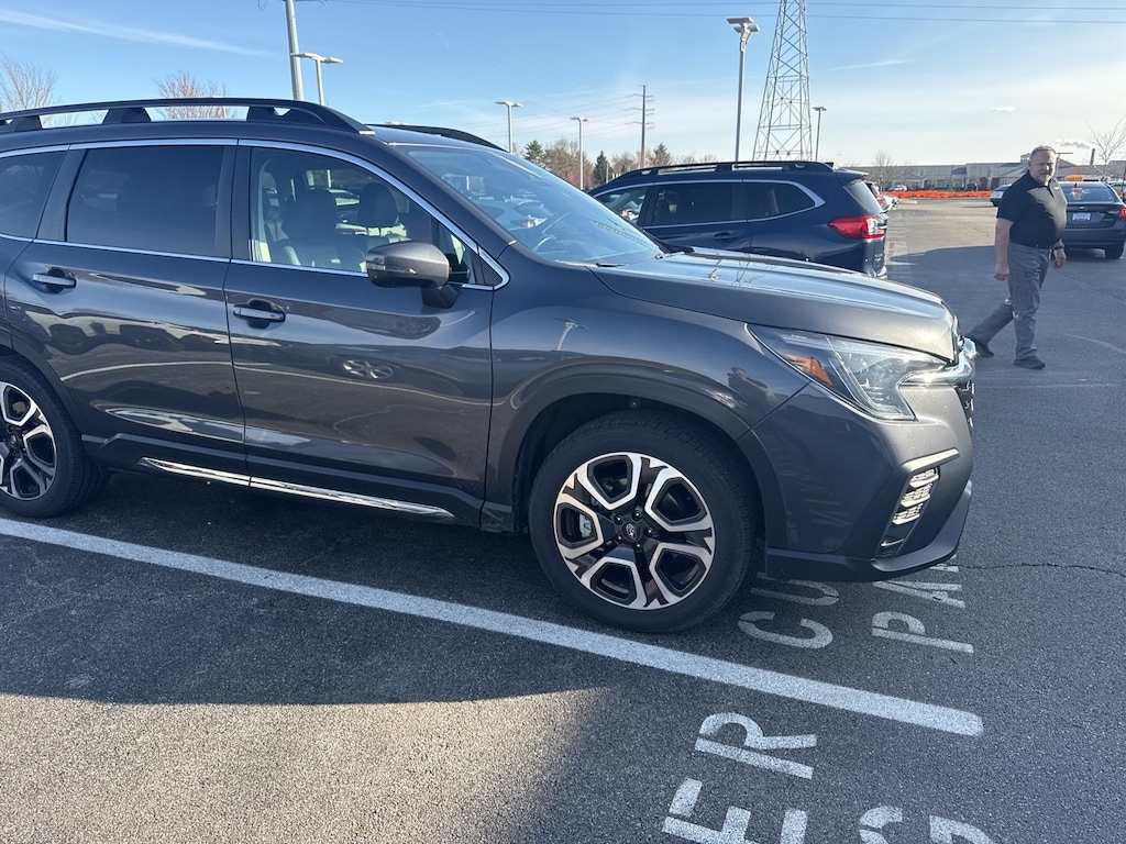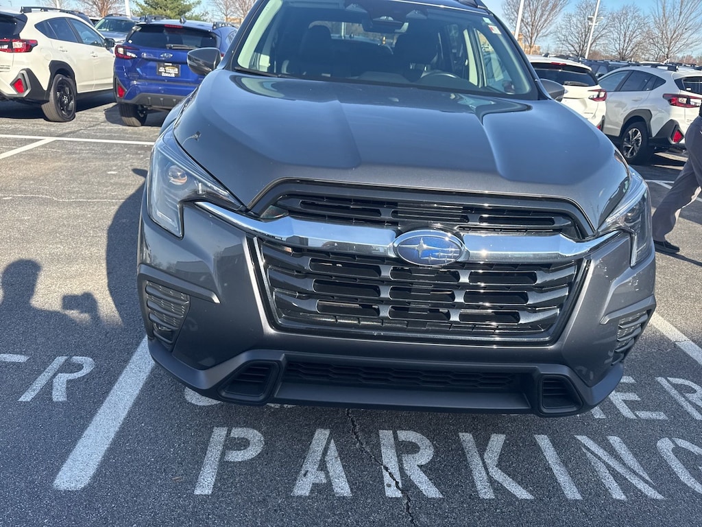 Recent Arrival! 2023 Subaru Certified. Magnetite Gray Metallic AWD Ascent Limited Lineartronic CVT 3rd row seats: bench, 4-Wheel Disc Brakes, 6 Speakers, ABS brakes, Air Conditioning, Alloy wheels, AM/FM radio: SiriusXM, Auto High-beam Headlights, Auto-dimming Rear-View mirror, Automatic temperature control, Axle Ratio: 4.44, Brake assist, Bumpers: body-color, Delay-off headlights, Driver door bin, Driver vanity mirror, Dual front impact airbags, Dual front side impact airbags, Electronic Stability Control, Emergency communication system: STARLINK Safety and Security (Subscription Required), Exterior Parking Camera Rear, Four wheel independent suspension, Front anti-roll bar, Front Bucket Seats, Front Center Armrest, Front dual zone A/C, Front fog lights, Front reading lights, Fully automatic headlights, Garage door transmitter: HomeLink, Heated door mirrors, Heated Front Bucket Seats, Heated front seats, Heated rear seats, Heated steering wheel, HVAC memory, Illuminated entry, Knee airbag, Leather Shift Knob, Leather steering wheel, Low tire pressure warning, Memory seat, Occupant sensing airbag, Outside temperature display, Overhead airbag, Overhead console, Panic alarm, Passenger door bin, Passenger vanity mirror, Perforated Leather-Trimmed Upholstery, Power door mirrors, Power driver seat, Power Liftgate, Power passenger seat, Power steering, Power windows, Radio data system, Radio: Subaru STARLINK 11.6" Multimedia Plus System, Rear air conditioning, Rear anti-roll bar, Rear reading lights, Rear seat center armrest, Rear window defroster, Rear window wiper, Reclining 3rd row seat, Remote keyless entry, Security system, Speed control, Speed-sensing steering, Split folding rear seat, Spoiler, STARLINK/Apple CarPlay/Android Auto, Steering wheel mounted audio controls, Tachometer, Telescoping steering wheel, Tilt steering wheel, Traction control, Trip computer, Turn signal indicator mirrors, Variably intermittent wipers, and Wheels: 20" x 7.5 J Dk Gray Alloy w/Machine Finish.