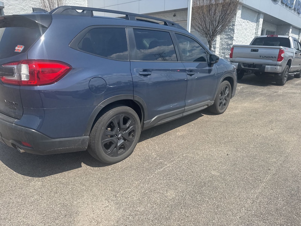 Recent Arrival! 2024 Subaru Cosmic Blue Pearl AWD Ascent Onyx Edition Lineartronic CVT Odometer is 1275 miles below market average! 3rd row seats: bench, 4-Wheel Disc Brakes, 6 Speakers, ABS brakes, Air Conditioning, Alloy wheels, AM/FM radio: SiriusXM, Auto High-beam Headlights, Auto-dimming Rear-View mirror, Automatic temperature control, Axle Ratio: 4.44, Brake assist, Bumpers: body-color, Compass, Delay-off headlights, Driver door bin, Driver vanity mirror, Dual front impact airbags, Dual front side impact airbags, Electronic Stability Control, Emergency communication system: STARLINK Safety and Security (Subscription Required), Exterior Parking Camera Rear, Four wheel independent suspension, Front anti-roll bar, Front Bucket Seats, Front Center Armrest, Front dual zone A/C, Front fog lights, Front reading lights, Fully automatic headlights, Garage door transmitter: HomeLink, Heated door mirrors, Heated Front Bucket Seats, Heated front seats, Heated steering wheel, Illuminated entry, Knee airbag, Leather Shift Knob, Leather steering wheel, Low tire pressure warning, Occupant sensing airbag, Outside temperature display, Overhead airbag, Overhead console, Panic alarm, Passenger door bin, Passenger vanity mirror, Power door mirrors, Power driver seat, Power Liftgate, Power moonroof, Power steering, Power windows, Radio data system, Radio: Subaru STARLINK 11.6" Multimedia Plus System, Rear air conditioning, Rear anti-roll bar, Rear reading lights, Rear window defroster, Rear window wiper, Reclining 3rd row seat, Remote keyless entry, Security system, Speed control, Speed-sensing steering, Split folding rear seat, Spoiler, STARLINK/Apple CarPlay/Android Auto, StarTex Upholstery, Steering wheel mounted audio controls, Tachometer, Telescoping steering wheel, Tilt steering wheel, Traction control, Trip computer, Turn signal indicator mirrors, Variably intermittent wipers, and Wheels: 20" x 7.5 J Aluminum Alloy w/Black Finish.