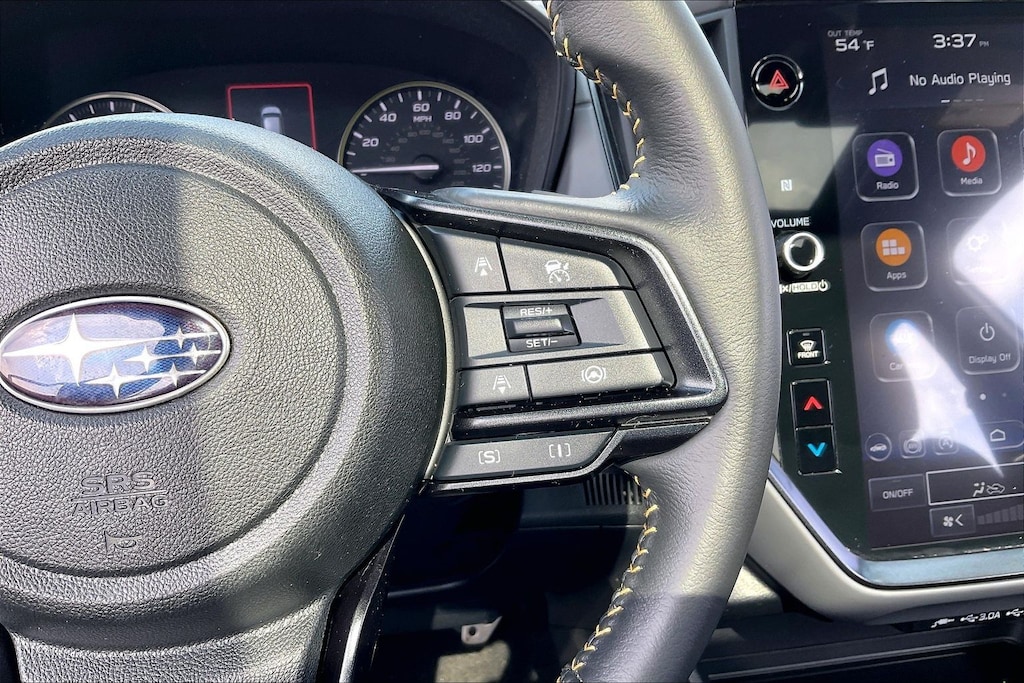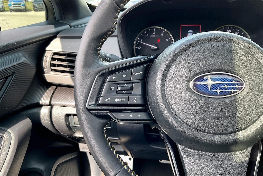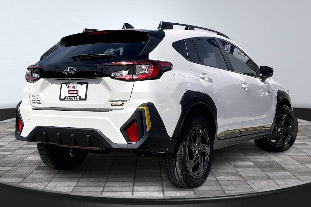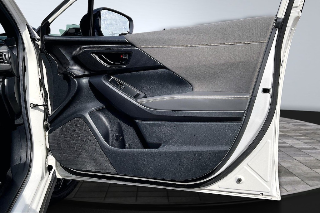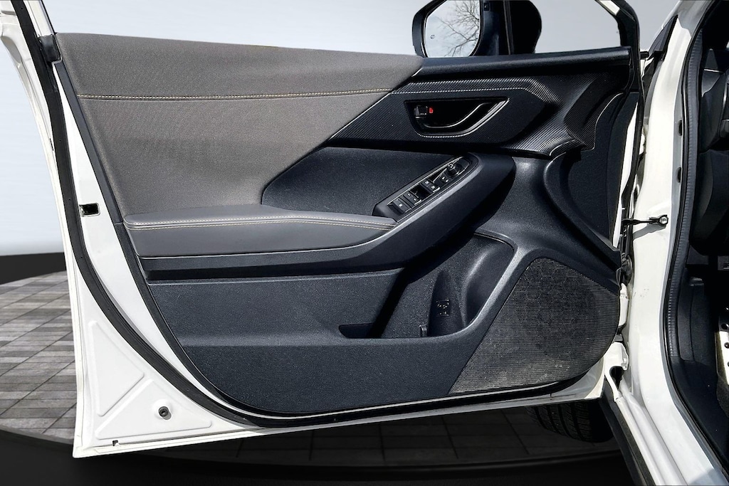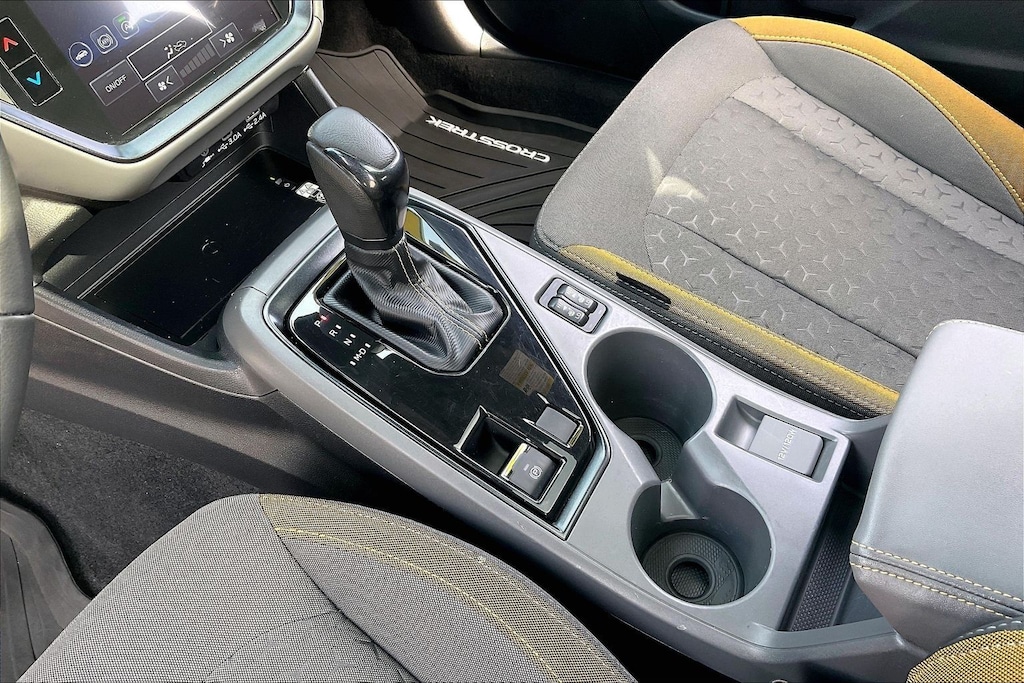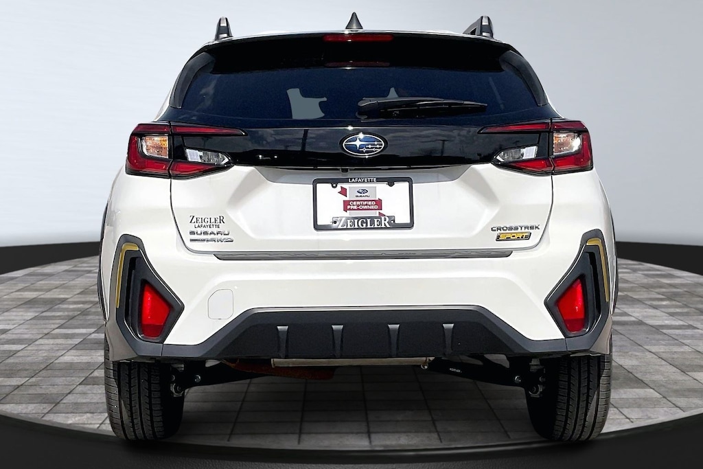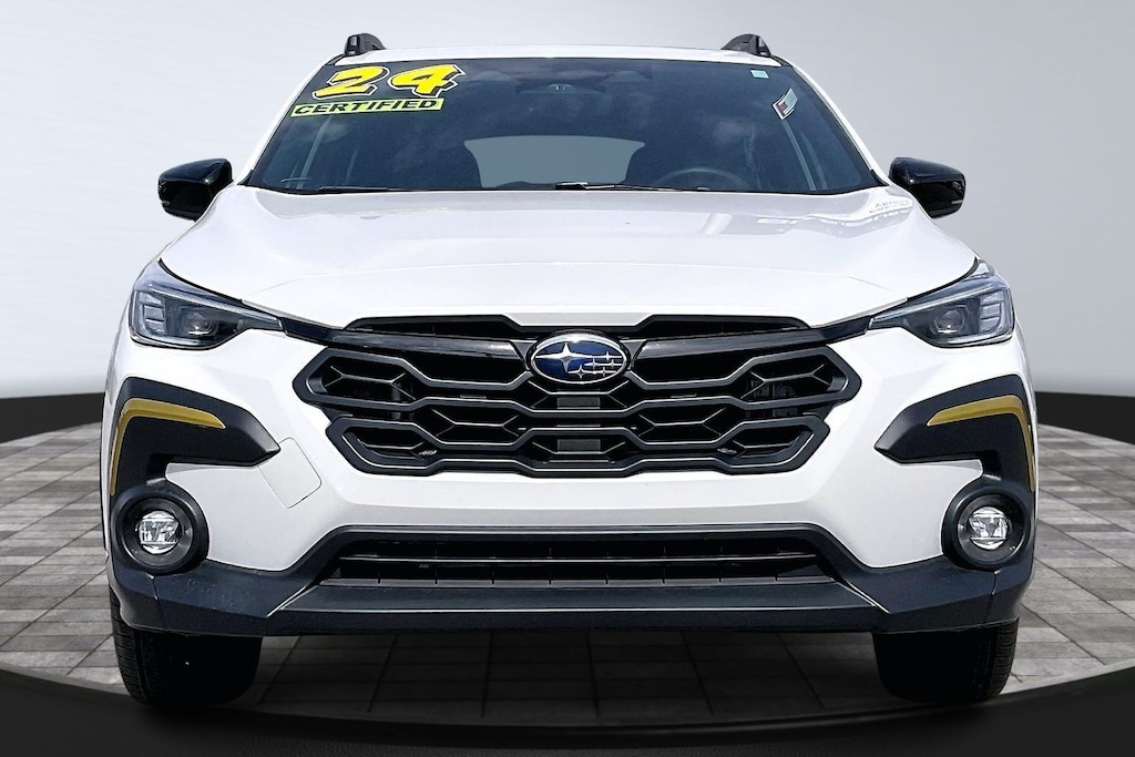 2024 Subaru Certified. Crystal White Pearl AWD Crosstrek Sport Lineartronic CVT 3.70 Axle Ratio, 4-Wheel Disc Brakes, 6 Speakers, ABS brakes, Air Conditioning, Alloy wheels, AM/FM radio: SiriusXM, Anti-whiplash front head restraints, Auto High-beam Headlights, Automatic temperature control, Brake assist, Bumpers: body-color, Driver door bin, Driver vanity mirror, Dual front impact airbags, Dual front side impact airbags, Electronic Stability Control, Emergency communication system: STARLINK Safety and Security (Subscription Required), Exterior Parking Camera Rear, Four wheel independent suspension, Front anti-roll bar, Front Bucket Seats, Front Center Armrest, Front dual zone A/C, Front fog lights, Front reading lights, Fully automatic headlights, Heated door mirrors, Heated Front Bucket Seats, Heated front seats, Illuminated entry, Knee airbag, Leather Shift Knob, Low tire pressure warning, Occupant sensing airbag, Outside temperature display, Overhead airbag, Overhead console, Panic alarm, Passenger door bin, Passenger vanity mirror, Power door mirrors, Power steering, Power windows, Radio data system, Radio: Subaru STARLINK 11.6" Multimedia Plus Sys, Rear anti-roll bar, Rear seat center armrest, Rear window defroster, Rear window wiper, Remote keyless entry, Security system, Speed control, Speed-sensing steering, Split folding rear seat, Spoiler, Sport Cloth Upholstery, STARLINK/Apple CarPlay/Android Auto, Steering wheel mounted audio controls, Tachometer, Telescoping steering wheel, Tilt steering wheel, Traction control, Trip computer, Turn signal indicator mirrors, Variably intermittent wipers, and Wheels: 18" x 7.0J Dark Gray Aluminum Alloy.