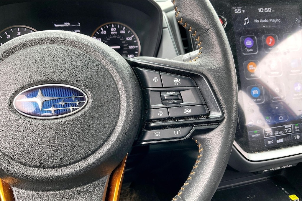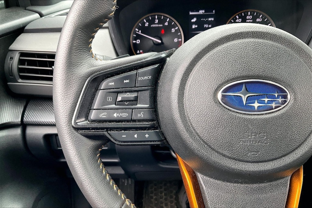 Priced below KBB Fair Purchase Price! 2024 Subaru Certified. Sun Blaze Pearl AWD Crosstrek Wilderness Lineartronic CVT Standard Model, 4-Wheel Disc Brakes, 4.11 Axle Ratio, 6 Speakers, ABS brakes, Air Conditioning, Alloy wheels, AM/FM radio: SiriusXM, Anti-whiplash front head restraints, Auto High-beam Headlights, Automatic temperature control, Brake assist, Bumpers: body-color, Driver door bin, Driver vanity mirror, Dual front impact airbags, Dual front side impact airbags, Electronic Stability Control, Emergency communication system: STARLINK Safety and Security (Subscription Required), Exterior Parking Camera Rear, Four wheel independent suspension, Front anti-roll bar, Front Bucket Seats, Front Center Armrest, Front dual zone A/C, Front fog lights, Front reading lights, Fully automatic headlights, Heated door mirrors, Heated Front Bucket Seats, Heated front seats, Illuminated entry, Knee airbag, Leather Shift Knob, Low tire pressure warning, Occupant sensing airbag, Outside temperature display, Overhead airbag, Overhead console, Panic alarm, Passenger door bin, Passenger vanity mirror, Power door mirrors, Power steering, Power windows, Radio data system, Radio: Subaru STARLINK 11.6" Multimedia Plus Sys, Rear anti-roll bar, Rear seat center armrest, Rear window defroster, Rear window wiper, Remote keyless entry, Security system, Speed control, Speed-sensing steering, Split folding rear seat, Spoiler, STARLINK/Apple CarPlay/Android Auto, Steering wheel mounted audio controls, Tachometer, Telescoping steering wheel, Tilt steering wheel, Traction control, Trailer Hitch, Trip computer, Turn signal indicator mirrors, Variably intermittent wipers, Wheels: 17" x 7.0J Matte Black Aluminum Alloy, and Wilderness StarTex Upholstery.