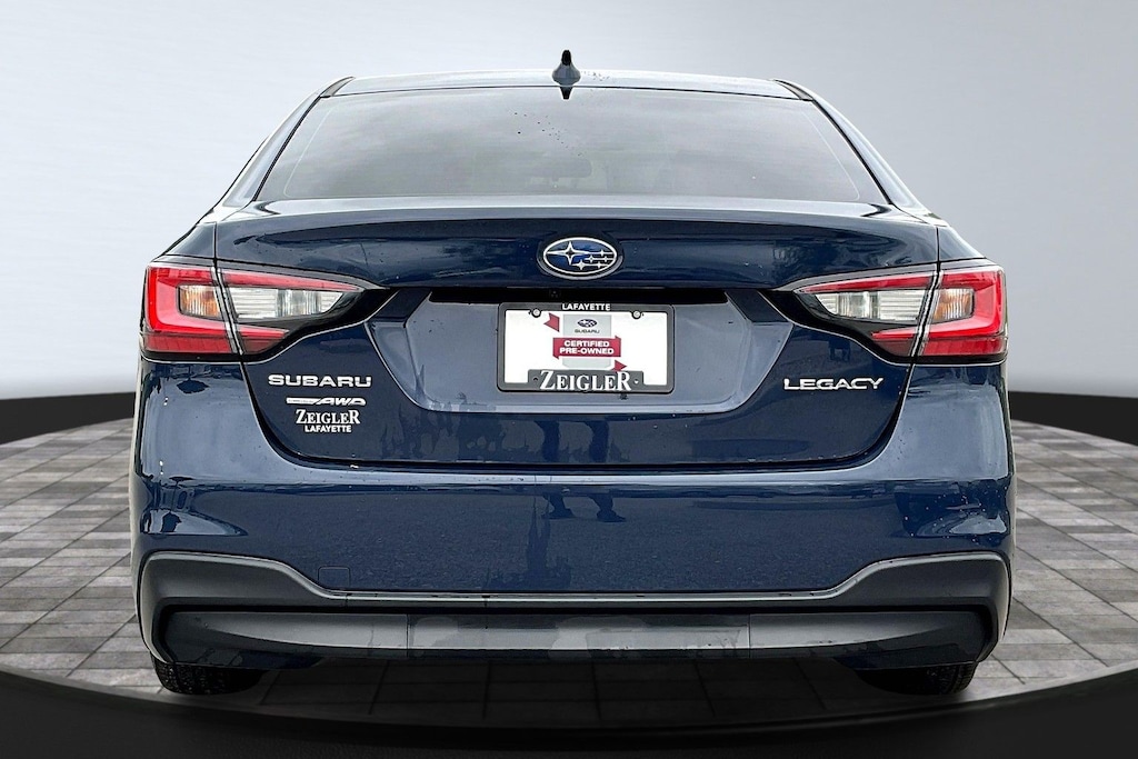 Priced below KBB Fair Purchase Price! 2024 Subaru Certified. Cosmic Blue Pearl AWD Legacy Premium Lineartronic CVT 4-Wheel Disc Brakes, 6 Speakers, ABS brakes, Air Conditioning, Alloy wheels, AM/FM radio: SiriusXM with 360L, Anti-whiplash front head restraints, Auto High-beam Headlights, Automatic temperature control, Brake assist, Bumpers: body-color, Cloth Upholstery, Driver door bin, Driver vanity mirror, Dual front impact airbags, Dual front side impact airbags, Electronic Stability Control, Emergency communication system: STARLINK Safety Plus (3-year free trial), Exterior Parking Camera Rear, Four wheel independent suspension, Front anti-roll bar, Front Bucket Seats, Front Center Armrest w/Storage, Front dual zone A/C, Front reading lights, Fully automatic headlights, Heated door mirrors, Heated Front Bucket Seats, Heated front seats, Illuminated entry, Knee airbag, Leather steering wheel, Low tire pressure warning, Occupant sensing airbag, Outside temperature display, Overhead airbag, Overhead console, Panic alarm, Passenger door bin, Passenger vanity mirror, Power door mirrors, Power driver seat, Power steering, Power windows, Radio: Subaru STARLINK 11.6" Multimedia Plus Sys, Rear anti-roll bar, Rear seat center armrest, Rear window defroster, Remote keyless entry, Security system, Speed control, Speed-sensing steering, Split folding rear seat, Steering wheel mounted audio controls, Tachometer, Telescoping steering wheel, Tilt steering wheel, Traction control, Trip computer, Turn signal indicator mirrors, Variably intermittent wipers, and Wheels: 17" x 7.5J Blk Mach Finish Aluminum-Alloy.