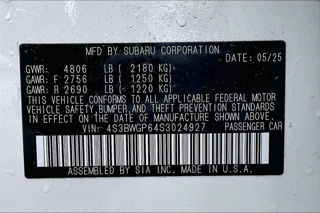 2025 Subaru Certified. THIS 2025 Subaru Certified Legacy qualifies for NEW Car Rates-as low as 2.9%(with approved credit) Crystal White Pearl AWD Legacy Touring XT Lineartronic CVT Standard Model, 12 Speakers, 4-Wheel Disc Brakes, ABS brakes, Air Conditioning, All-Weather Floor Liners, Alloy wheels, AM/FM radio: SiriusXM with 360L, Anti-whiplash front head restraints, Apple CarPlay & Android Auto, Auto High-beam Headlights, Auto-dimming Rear-View mirror, Automatic temperature control, Brake assist, Bumpers: body-color, Cargo Tray, Compass, Driver door bin, Driver vanity mirror, Dual front impact airbags, Dual front side impact airbags, Electronic Stability Control, Emergency communication system: MySubaru Safety Plus (3-year free trial included), Exterior Parking Camera Rear, Four wheel independent suspension, Front anti-roll bar, Front Bucket Seats, Front Center Armrest w/Storage, Front dual zone A/C, Front fog lights, Front reading lights, Fully automatic headlights, Garage door transmitter: HomeLink, harman/kardon® Speakers, Heated & Ventilated Front Bucket Seats, Heated door mirrors, Heated front seats, Heated rear seats, Heated steering wheel, HVAC memory, Illuminated entry, Knee airbag, Leather steering wheel, LED Upgrade, Low tire pressure warning, Memory seat, Navigation system: TomTom Navigation w/what3words, Occupant sensing airbag, Outside temperature display, Overhead airbag, Overhead console, Panic alarm, Passenger door bin, Passenger vanity mirror, Perforated Nappa Leather-Trimmed Upholstery, Power door mirrors, Power driver seat, Power moonroof, Power passenger seat, Power steering, Power windows, Radio: Subaru 11.6" Multimedia System w/Navigation, Rear anti-roll bar, Rear Bumper Applique, Rear seat center armrest, Rear Seatback Protector, Rear window defroster, Remote CD player, Remote keyless entry, Security system, Speed control, Speed-sensing steering, Split folding rear seat, Steering wheel mounted audio controls, Tachometer, Telescoping steering wheel, Tilt steering wheel, Traction control, Trip computer, Turn signal indicator mirrors, Variably intermittent wipers, Ventilated front seats, and Wheels: 18" x 7.5J Gray Mach Finish Aluminum-Alloy.