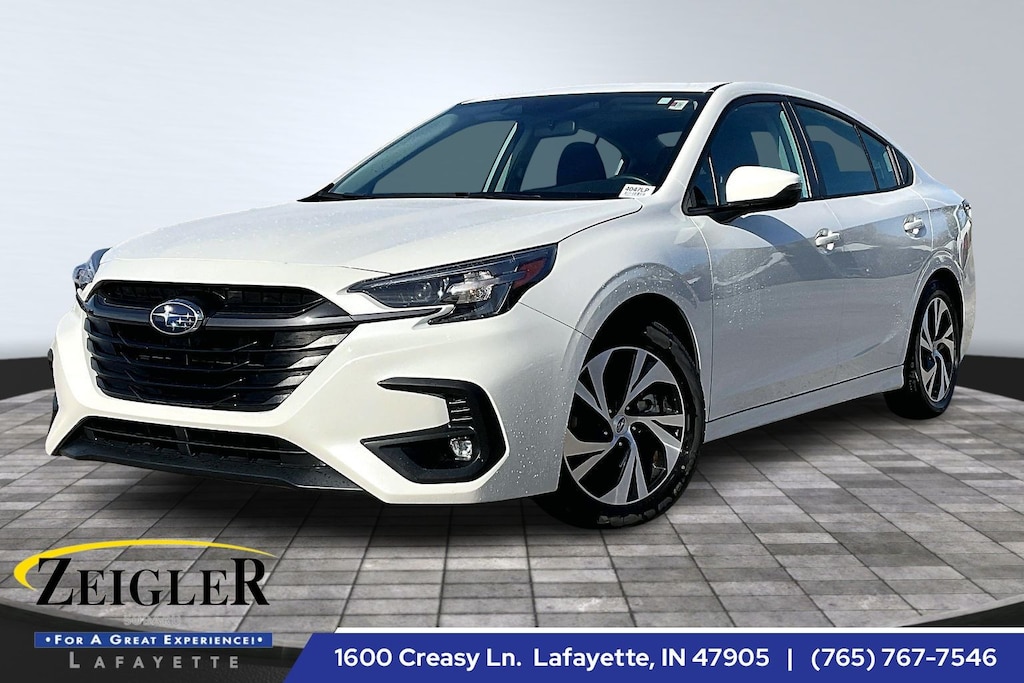 Priced below KBB Fair Purchase Price! 2025 Subaru Certified. Crystal White Pearl AWD Legacy Premium Lineartronic CVT 4-Wheel Disc Brakes, 6 Speakers, ABS brakes, Air Conditioning, Alloy wheels, AM/FM radio: SiriusXM with 360L, Anti-whiplash front head restraints, Auto High-beam Headlights, Automatic temperature control, Brake assist, Bumpers: body-color, Cloth Upholstery, Driver door bin, Driver vanity mirror, Dual front impact airbags, Dual front side impact airbags, Electronic Stability Control, Exterior Parking Camera Rear, Four wheel independent suspension, Front anti-roll bar, Front Bucket Seats, Front Center Armrest w/Storage, Front dual zone A/C, Front reading lights, Fully automatic headlights, Heated door mirrors, Heated Front Bucket Seats, Heated front seats, Illuminated entry, Knee airbag, Leather steering wheel, Low tire pressure warning, Occupant sensing airbag, Outside temperature display, Overhead airbag, Overhead console, Panic alarm, Passenger door bin, Passenger vanity mirror, Power door mirrors, Power driver seat, Power steering, Power windows, Rear anti-roll bar, Rear seat center armrest, Rear window defroster, Remote keyless entry, Security system, Speed control, Speed-sensing steering, Split folding rear seat, Steering wheel mounted audio controls, Tachometer, Telescoping steering wheel, Tilt steering wheel, Traction control, Trip computer, Turn signal indicator mirrors, Variably intermittent wipers, and Wheels: 17" x 7.5J Blk Mach Finish Aluminum-Alloy.