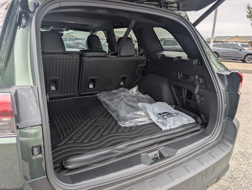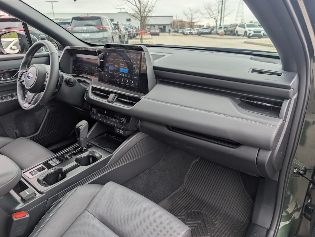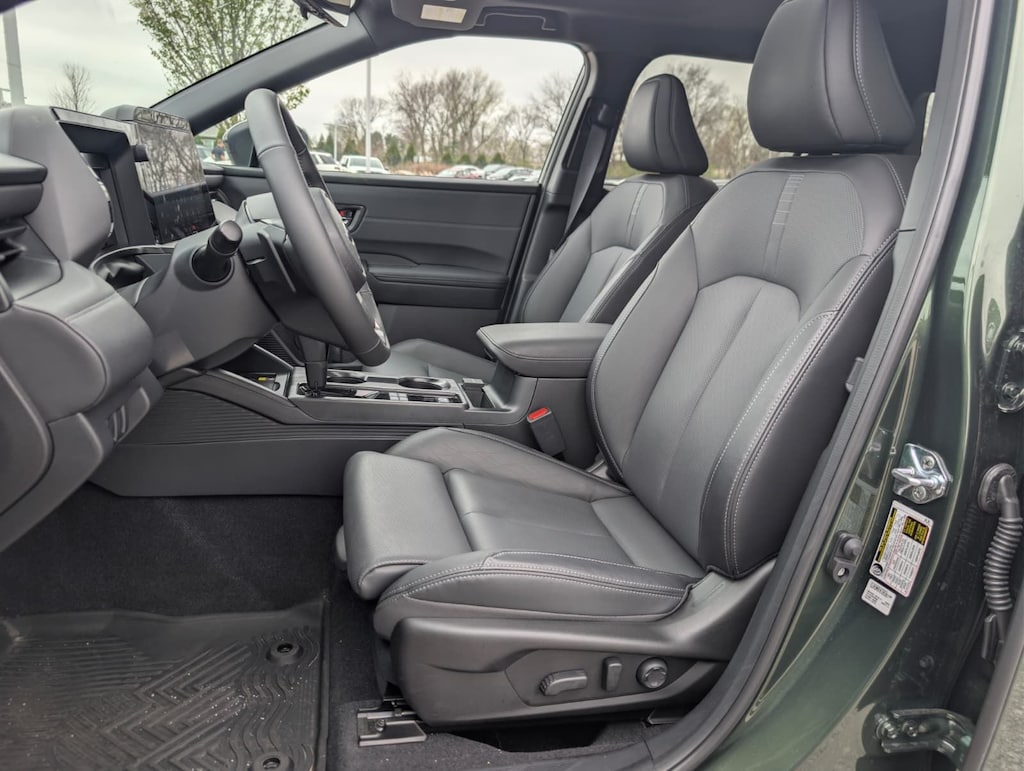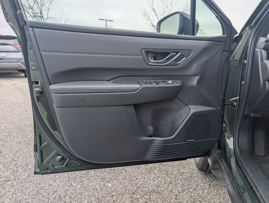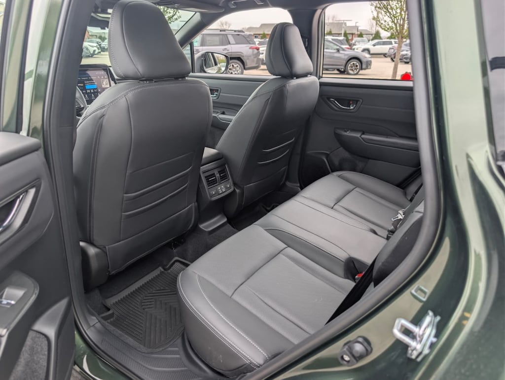 Recent Arrival! 2026 Subaru Certified. Green AWD Outback Touring CVT Lineartronic 12 Speakers, 4-Wheel Disc Brakes, ABS brakes, Air Conditioning, Alloy wheels, AM/FM radio: SiriusXM with 360L, Anti-whiplash front head restraints, Auto High-beam Headlights, Auto-dimming Rear-View mirror, Automatic temperature control, Blind Spot Warning, Brake assist, Bumpers: body-color, Compass, Driver door bin, Driver vanity mirror, Dual front impact airbags, Dual front side impact airbags, Electronic Stability Control, Emergency communication system: MySubaru Companion (5-years free), Exterior Parking Camera Rear, Four wheel independent suspension, Front anti-roll bar, Front Bucket Seats, Front Center Armrest w/Storage, Front dual zone A/C, Front fog lights, Front reading lights, Fully automatic headlights, Garage door transmitter: HomeLink, harman/kardon® Speakers, Heated and Ventilated Front Bucket Seats, Heated door mirrors, Heated front seats, Heated rear seats, Heated steering wheel, HVAC memory, Illuminated entry, Knee airbag, Leather steering wheel, Low tire pressure warning, Memory seat, Nappa Leather-Trimmed Perforated Upholstery, Navigation system: MySubaru Navigator (1-year trial), Occupant sensing airbag, Outside temperature display, Overhead airbag, Overhead console, Panic alarm, Passenger door bin, Passenger vanity mirror, Power door mirrors, Power driver seat, Power Liftgate, Power moonroof, Power passenger seat, Power steering, Power windows, Radio: Subaru 12.1" Multimedia System with Navigation, Rain sensing wipers, Rear anti-roll bar, Rear seat center armrest, Rear window defroster, Rear window wiper, Remote keyless entry, Security system, Speed control, Speed-sensing steering, Split folding rear seat, Spoiler, Steering wheel mounted audio controls, Tachometer, Telescoping steering wheel, Tilt steering wheel, Traction control, Trip computer, Turn signal indicator mirrors, Variably intermittent wipers, Ventilated front seats, and Wheels: 18" x 7J Black Aluminum-Alloy.