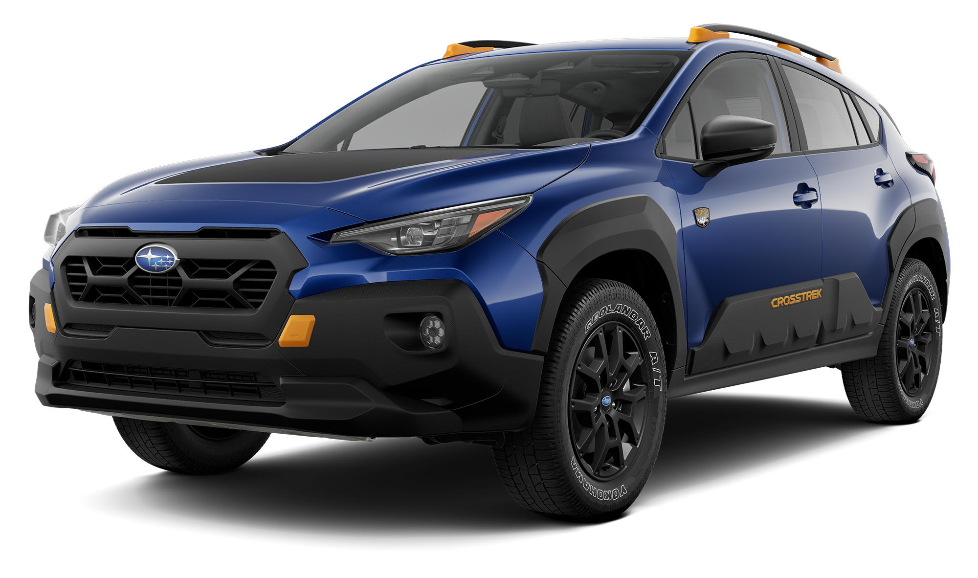 The rugged new Subaru Crosstrek Wilderness boasts exclusive styling with hexagonal-style LED fog lights, an anti-glare hood decal, and brand-new front and rear bumpers that enhance its exterior design. Plus, it's available in Geyser Blue, an exclusive color for the Wilderness family, and Wilderness badges adorning the front doors and rear gate.