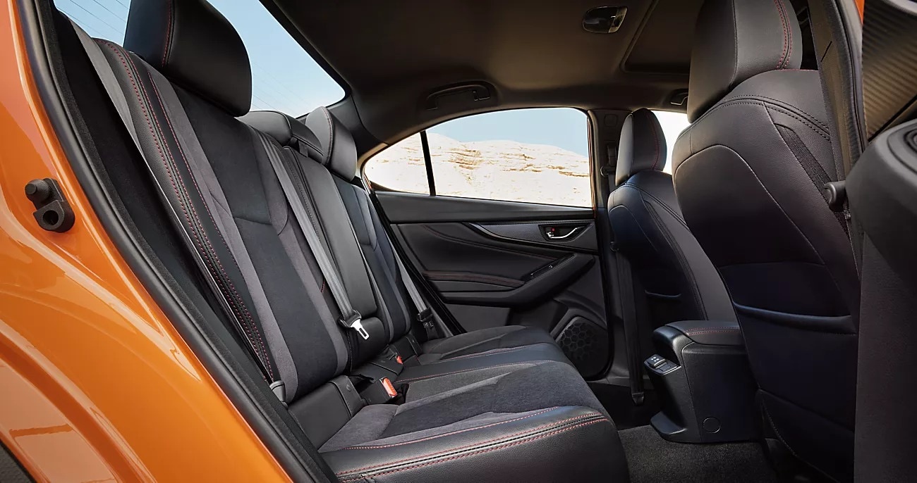 The 2024 Subaru WRX has a spacious interior that comfortably seats up to five people. You get standard Recaro™ performance-design front seats to improve support when driving on the track. The 19-inch alloy wheels provide an aggressive angular design that improves grip on every surface. Despite being a performance sedan, you still get ample legroom in the back, providing plenty of space for taller passengers.