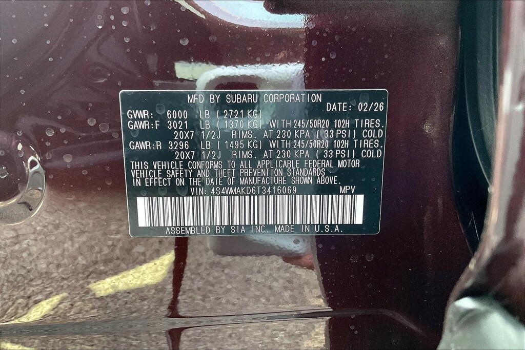 AWD 2026 Subaru Ascent Touring Dark Mahogany Pearl Lineartronic CVT 2.4L 4-Cylinder DOHC 16V