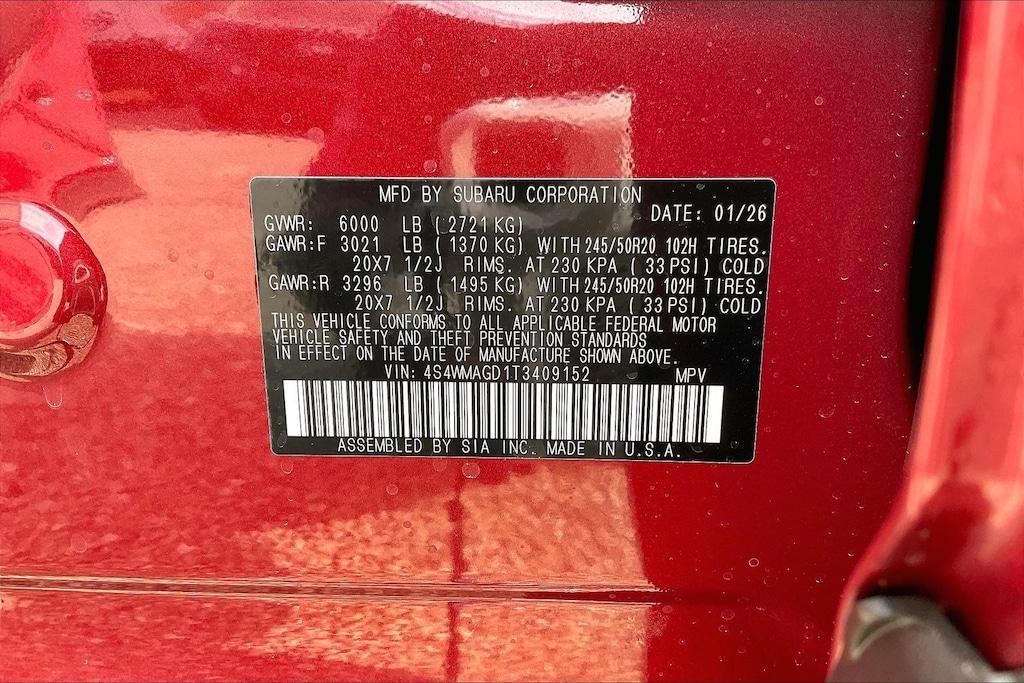 AWD 2026 Subaru Ascent Limited Crimson Red Pearl Lineartronic CVT 2.4L 4-Cylinder DOHC 16V