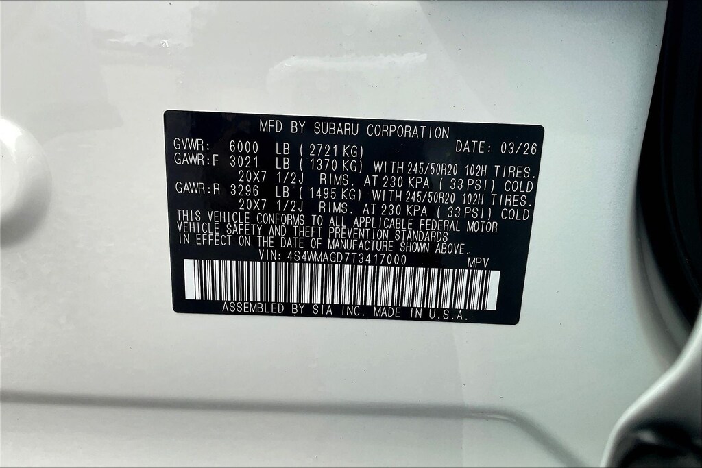 AWD 2026 Subaru Ascent Limited Crystal White Pearl Lineartronic CVT 2.4L 4-Cylinder DOHC 16V
