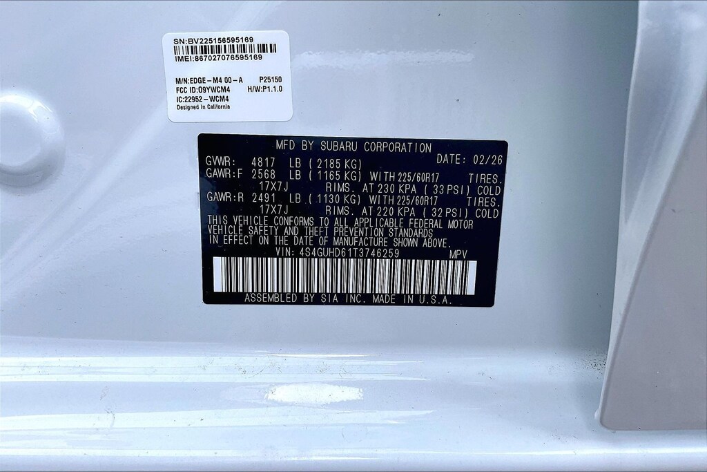 • Tracker system: MySubaru Companion (5-years free)