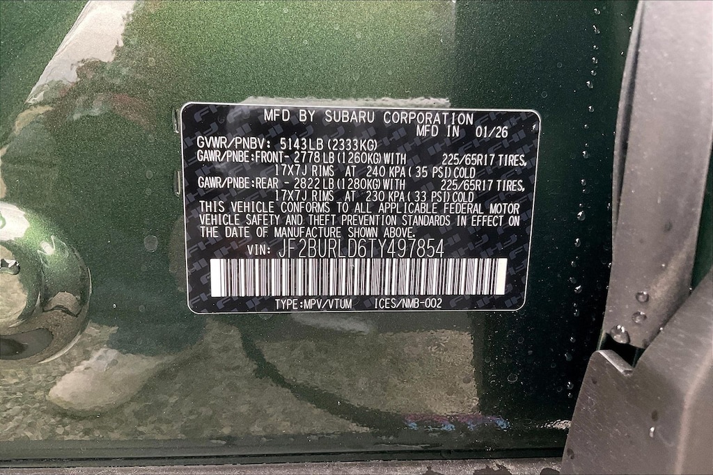 AWD 2026 Subaru Outback Wilderness Deep Emerald Green Pearl CVT Lineartronic 2.4L 4-Cylinder DOHC 16V