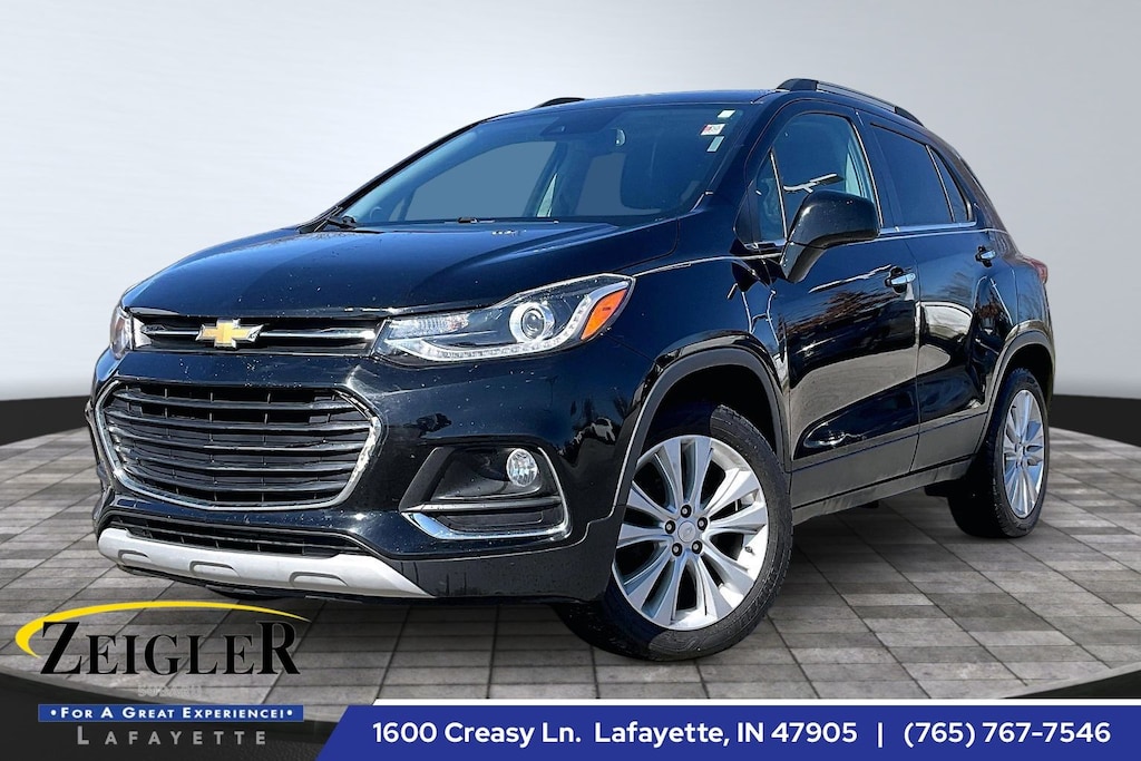 2018 Chevrolet Mosaic Black Metallic AWD Trax Premier 6-Speed Automatic Interior Protection Package (LPO) (Cargo Mat and Front & Rear All Weather Floor Mats (LPO)), Preferred Equipment Group 1LZ (All-Wheel Drive Chassis), 18" Aluminum Wheels, 2 USB Ports w/Auxiliary Input Jack, 2-Way Manual Front Passenger Seat Adjuster, 3.53 Final Drive Axle Ratio, 4-Wheel Disc Brakes, 6-Way Power Driver Seat Adjuster, 7 Speakers, ABS brakes, Accessory Carrier Mount (LPO), Air Conditioning, Alloy wheels, AM/FM radio: SiriusXM, Apple CarPlay/Android Auto, Auto-dimming Rear-View mirror, Bose Premium 7-Speaker Audio System Feature, Brake assist, Bumpers: body-color, Compass, Delay-off headlights, Driver door bin, Driver vanity mirror, Driver's Seat Mounted Armrest, Dual front impact airbags, Dual front side impact airbags, Electronic Stability Control, Emergency communication system: OnStar and Chevrolet connected services capable, Exterior Parking Camera Rear, Front anti-roll bar, Front Bucket Seats, Front Bucket Seats w/Driver Power Lumbar, Front fog lights, Front reading lights, Front wheel independent suspension, Fully automatic headlights, Heated door mirrors, Heated Driver & Front Passenger Seats, Heated front seats, Illuminated entry, Knee airbag, Leatherette Seat Trim, Low tire pressure warning, Occupant sensing airbag, Outside temperature display, Overhead airbag, Panic alarm, Passenger door bin, Passenger vanity mirror, Power door mirrors, Power driver seat, Power moonroof, Power steering, Power windows, Premium audio system: Chevrolet MyLink, Radio data system, Radio: Chevrolet MyLink Audio System, Rear seat center armrest, Rear side impact airbag, Rear window defroster, Rear window wiper, Remote keyless entry, Roof rack: rails only, Security system, SiriusXM Satellite Radio, Speed control, Speed-sensing steering, Split folding rear seat, Spoiler, Steering wheel mounted audio controls, Tachometer, Telescoping steering wheel, Tilt steering wheel, Traction control, Trip computer, and Variably intermittent wipers.