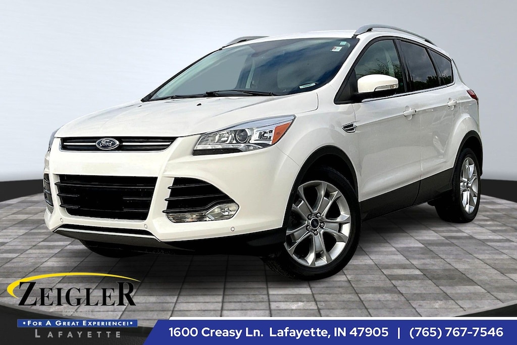 Recent Arrival! Super Clean! 2016 Ford FWD Escape Titanium 6-Speed Automatic 10 Speakers, 3.21 Axle Ratio, 4-Wheel Disc Brakes, ABS brakes, Air Conditioning, Alloy wheels, AM/FM radio: SiriusXM, Auto-dimming Rear-View mirror, Automatic temperature control, Brake assist, Bumpers: body-color, CD player, Compass, Delay-off headlights, Driver door bin, Driver vanity mirror, Dual front impact airbags, Dual front side impact airbags, Electronic Stability Control, Emergency communication system: 911 Assist, Exterior Parking Camera Rear, Four wheel independent suspension, Front anti-roll bar, Front Bucket Seats, Front Center Armrest, Front dual zone A/C, Front fog lights, Front reading lights, Fully automatic headlights, Garage door transmitter, Heated door mirrors, Heated front seats, Heated Leather-Trimmed Buckets w/60/40 Rear Seat, Illuminated entry, Knee airbag, Leather Shift Knob, Low tire pressure warning, Memory seat, Occupant sensing airbag, Outside temperature display, Overhead airbag, Overhead console, Panic alarm, Passenger door bin, Passenger vanity mirror, Power door mirrors, Power driver seat, Power Liftgate, Power passenger seat, Power steering, Power windows, Radio data system, Radio: AM/FM Single CD/MP3, Rear anti-roll bar, Rear Parking Sensors, Rear reading lights, Rear seat center armrest, Rear window defroster, Rear window wiper, Remote keyless entry, Roof rack: rails only, Security system, Speed control, Speed-sensing steering, Split folding rear seat, Steering wheel mounted audio controls, SYNC 3 Communications & Entertainment System, Tachometer, Telescoping steering wheel, Tilt steering wheel, Traction control, Trip computer, Turn signal indicator mirrors, Variably intermittent wipers, and Wheels: 18" Sparkle Nickel Painted Aluminum.