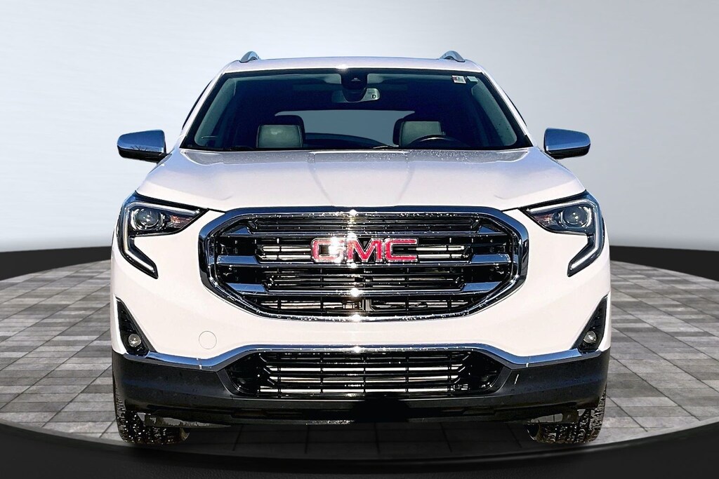 Priced below KBB Fair Purchase Price! 2018 GMC Summit White AWD Terrain SLT 9-Speed Automatic Driver Alert Package I (Lane Change Alert w/Side Blind Zone Alert, Rear Cross-Traffic Alert, and Rear Park Assist & Safety Alert Seat), Driver Alert Package II (Following Distance Indicator, Forward Collision Alert, IntelliBeam Auto High Beam Headlamp Control, Lane Keep Assist w/Lane Departure Warning, and Low Speed Forward Automatic Braking), Infotainment Package II (HD Radio, Premium 7-Speaker Bose Sound System w/Amplifier, and Radio: GMC Infotainment Audio System w/Navigation), Interior Protection Package (LPO) (All-Weather Cargo Mat (LPO) and All-Weather Floor Mats), Memory Package, Preferred Equipment Group 4SA, Preferred Package (6-Way Power Front Passenger Seat, Front Passenger 2-Way Power Lumbar, Hands-Free Rear Power Programmable Liftgate, Heated Steering Wheel, and Universal Home Remote), SLT Exterior Accent Package (LPO) (Bright Rear Bumper Protector (LPO) and Chrome Mirror Caps), Trailering Equipment (Factory Installed Trailer Hitch), 2 USB Data Ports, 2 USB Data Ports w/Auxiliary Input Jack, 3.17 Axle Ratio, 3.47 Axle Ratio, 4-Way Manual Front Passenger Seat, 4-Wheel Antilock 4-Wheel Disc Brakes, 4-Wheel Disc Brakes, 6 Speakers, 6-Speaker Audio System Feature, 8-Way Power Driver Seat Adjuster, ABS brakes, Air Conditioning, Alloy wheels, AM/FM radio: SiriusXM, Apple CarPlay/Android Auto, Auto-dimming door mirrors, Auto-dimming Rear-View mirror, Automatic temperature control, Bluetooth® For Phone, Brake assist, Bumpers: body-color, Compass, Delay-off headlights, Driver & Front Passenger Heated Seats, Driver door bin, Driver vanity mirror, Dual Exhaust w/Bright Tips, Dual front impact airbags, Dual front side impact airbags, Electronic Stability Control, Emergency communication system: OnStar Guidance, Exterior Parking Camera Rear, Four wheel independent suspension, Front anti-roll bar, Front Bucket Seats, Front Center Armrest, Front dual zone A/C, Front fog lights, Front reading lights, Fully automatic headlights, Heated door mirrors, Heated front seats, High-Intensity Discharge Headlights, Illuminated entry, Low tire pressure warning, Occupant sensing airbag, Outside temperature display, Overhead airbag, Overhead console, Panic alarm, Passenger door bin, Passenger vanity mirror, Perforated Leather-Appointed Seat Trim, Power door mirrors, Power Driver Lumbar Control, Power driver seat, Power steering, Power windows, Radio data system, Radio: GMC Infotainment Audio System w/8" Display, Rear anti-roll bar, Rear seat center armrest, Rear window defroster, Rear window wiper, Remote keyless entry, Roof Rack Cross Rails (LPO), Roof rack: rails only, SD Card Reader, Security system, SiriusXM Satellite Radio, Skyscape Power Sunroof w/Power Sunscreen, Speed control, Speed-sensing steering, Split folding rear seat, Spoiler, Steering wheel mounted audio controls, Tachometer, Telescoping steering wheel, Tilt steering wheel, Traction control, Trip computer, Turn signal indicator mirrors, Variably intermittent wipers, Wheels: 18" x 7" Machined Aluminum w/Gray Accents, and Wheels: 19" x 7.5" Machined Aluminum w/Gray Accents.