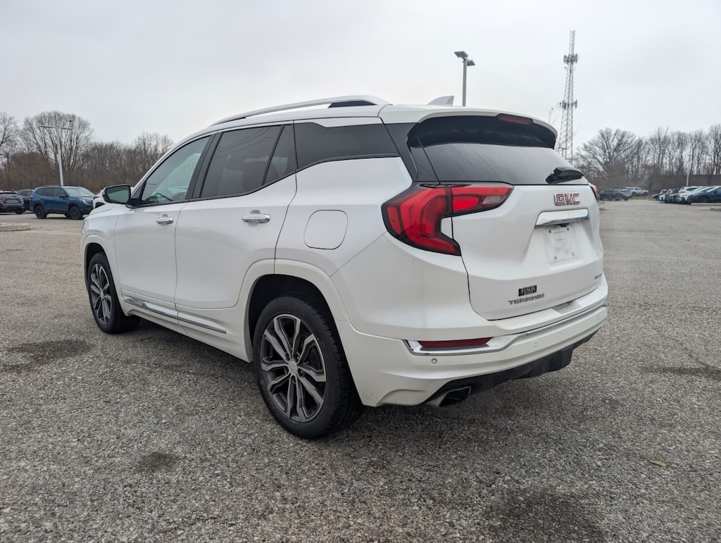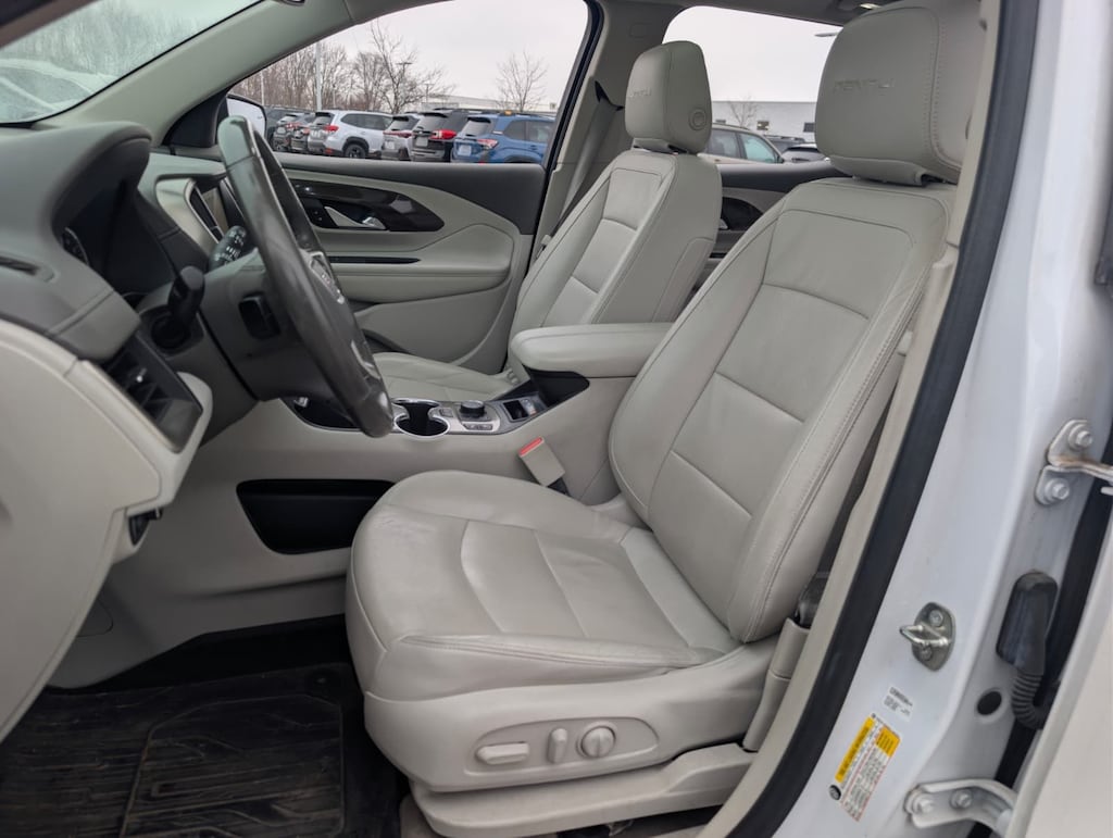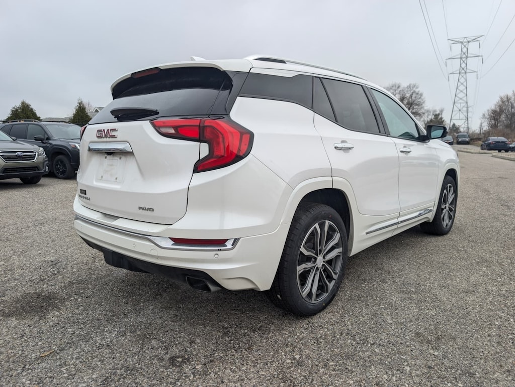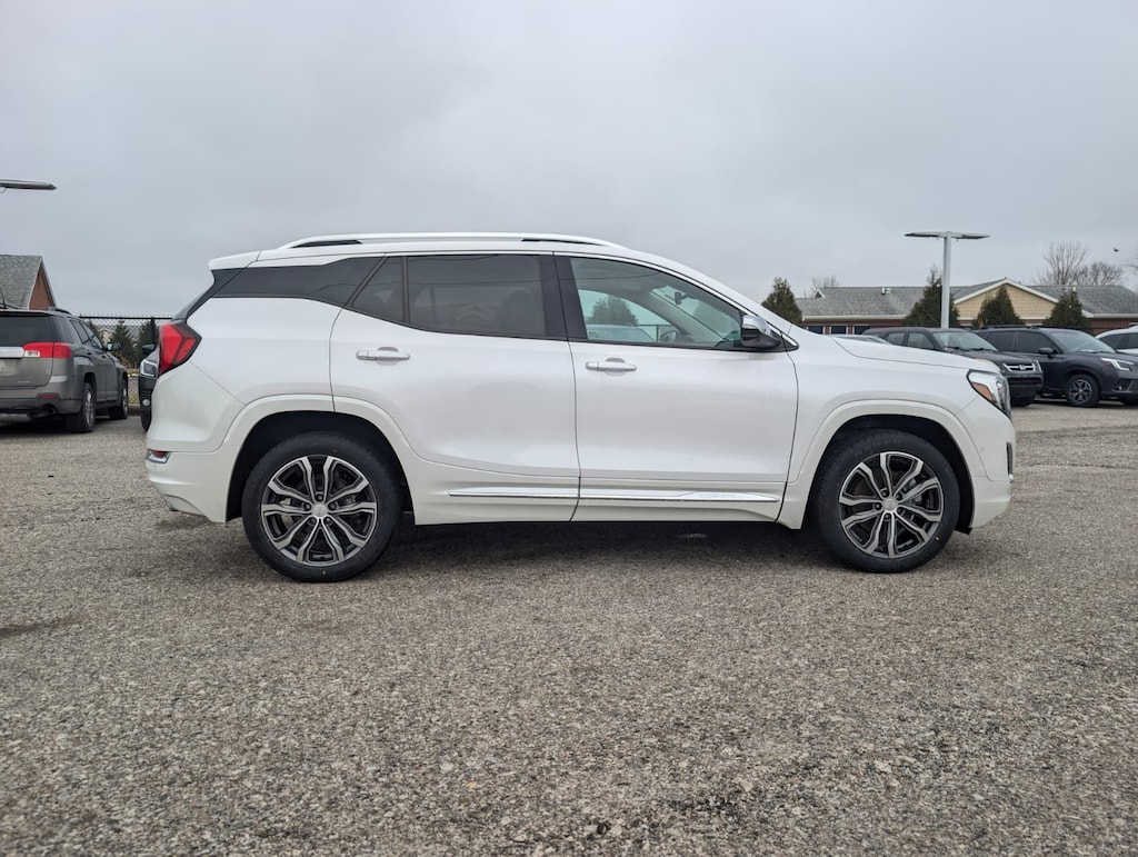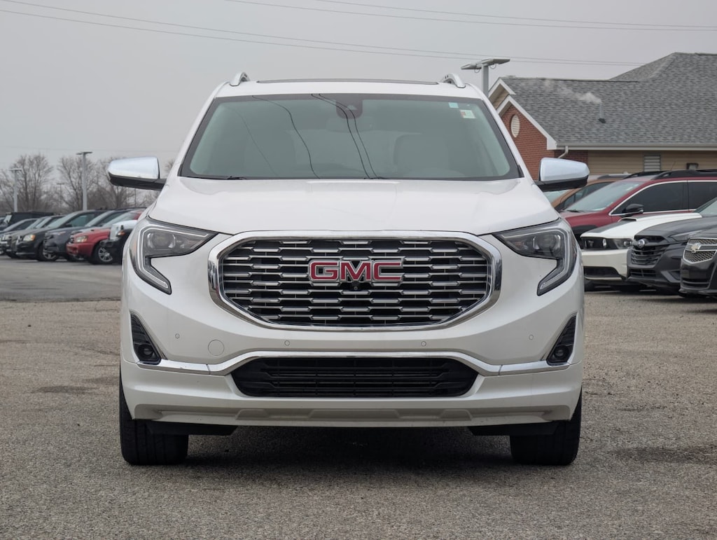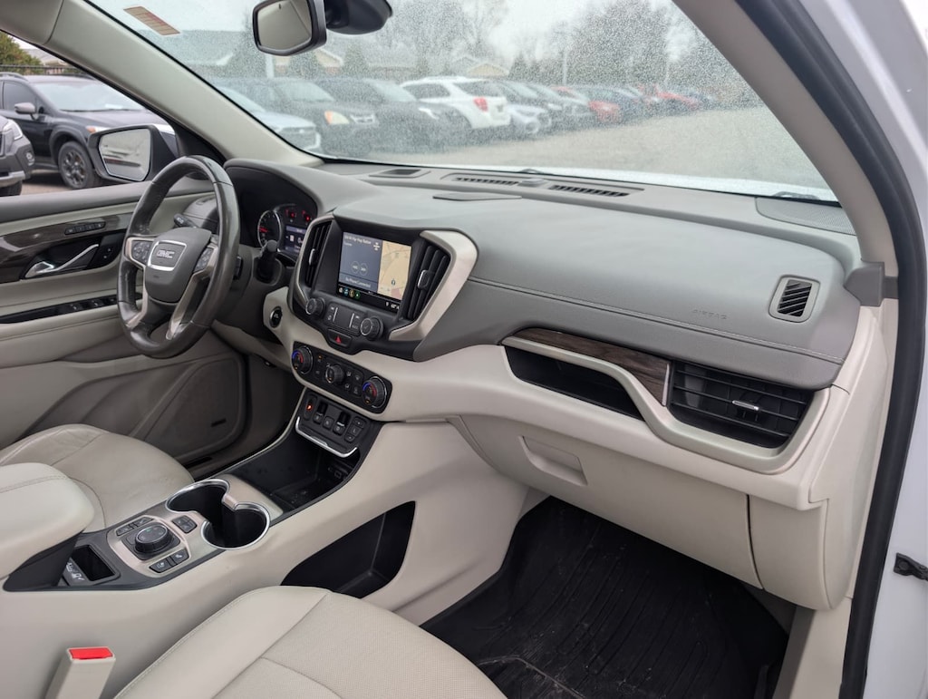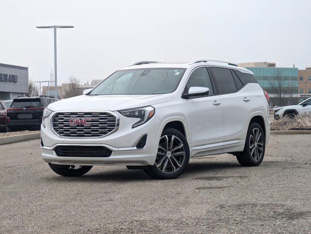 2020 GMC White Frost Tricoat AWD Terrain Denali 9-Speed Automatic Advanced Safety Package (Adaptive Cruise Control - Camera, Automatic Parking Assist, and HD Surround Vision), Comfort Package (Heated Rear Outboard Seating Positions, Ventilated Driver Seat, and Ventilated Front Passenger Seat), Denali Premium Package, Floor Liner Package (LPO) (Front & Rear All-Weather Floor Liners (LPO) and Integrated Cargo Liner (LPO)), License Plate Front Mounting Package, Preferred Equipment Group 5SA, 2 USB Data Ports, 2 USB Data Ports w/SD Card Reader, 3.17 Axle Ratio, 4-Wheel Disc Brakes, 6-Way Power Front Passenger Seat, 7 Speakers, 8-Way Power Driver Seat Adjuster, ABS brakes, Air Conditioning, Alloy wheels, AM/FM radio: SiriusXM, Apple CarPlay/Android Auto, Auto High-beam Headlights, Auto-dimming door mirrors, Auto-dimming Rear-View mirror, Automatic temperature control, Bluetooth® For Phone, Brake assist, Bumpers: body-color, Compass, Delay-off headlights, Driver & Front Passenger Heated Seats, Driver door bin, Driver vanity mirror, Dual front impact airbags, Dual front side impact airbags, Electronic Stability Control, Emergency communication system: OnStar and GMC connected services capable, Exterior Parking Camera Rear, Four wheel independent suspension, Front anti-roll bar, Front Bucket Seats, Front Center Armrest, Front dual zone A/C, Front fog lights, Front Passenger 2-Way Power Lumbar, Front reading lights, Fully automatic headlights, Garage door transmitter, HD Radio, Heated door mirrors, Heated front seats, Heated steering wheel, Illuminated entry, Lane Departure Warning System, Low tire pressure warning, Memory seat, Navigation System, Occupant sensing airbag, Outside temperature display, Overhead airbag, Overhead console, Panic alarm, Passenger door bin, Passenger vanity mirror, Perforated Leather-Appointed Seat Trim w/Denali Logo, Power door mirrors, Power Driver Lumbar Control, Power driver seat, Power Liftgate, Power passenger seat, Power steering, Power windows, Premium 7-Speaker Bose Sound System w/Amplifier, Radio data system, Radio: GMC Infotainment System w/Navigation, Rear anti-roll bar, Rear seat center armrest, Rear window defroster, Rear window wiper, Remote keyless entry, Roof rack: rails only, Security system, SiriusXM Radio, Skyscape Power Sunroof w/Power Sunscreen, Speed control, Speed-sensing steering, Split folding rear seat, Spoiler, Steering wheel mounted audio controls, Tachometer, Telescoping steering wheel, Tilt steering wheel, Traction control, Trip computer, Turn signal indicator mirrors, Variably intermittent wipers, and Wheels: 19" x 7.5" Ultra-Bright Machined Aluminum.