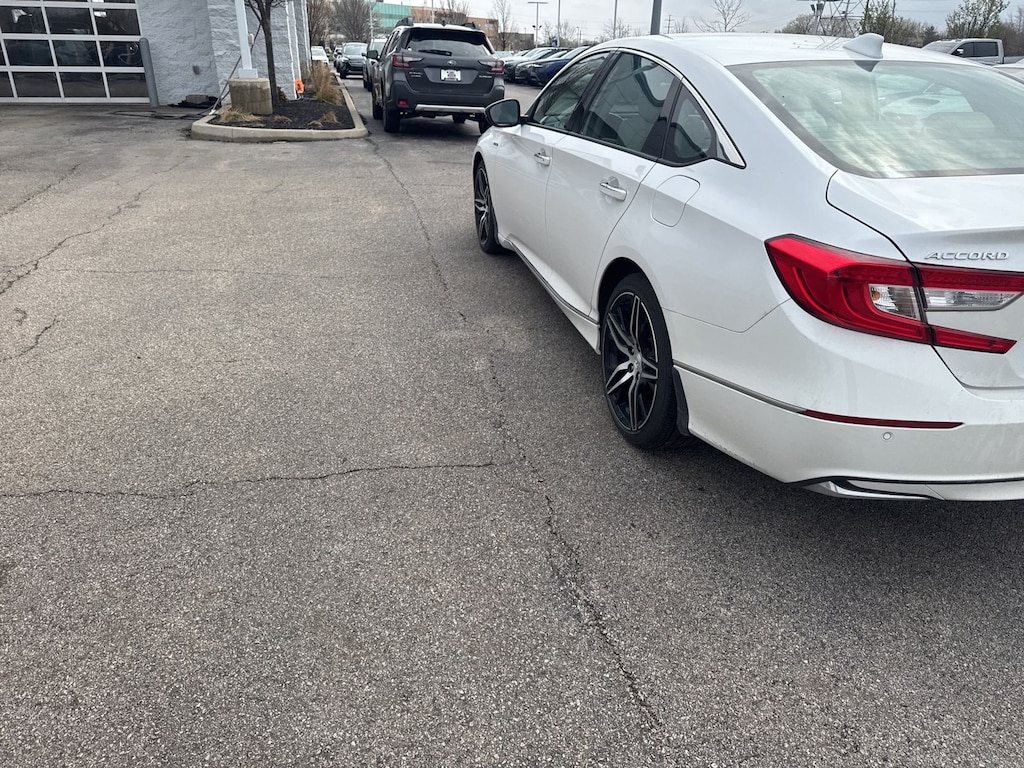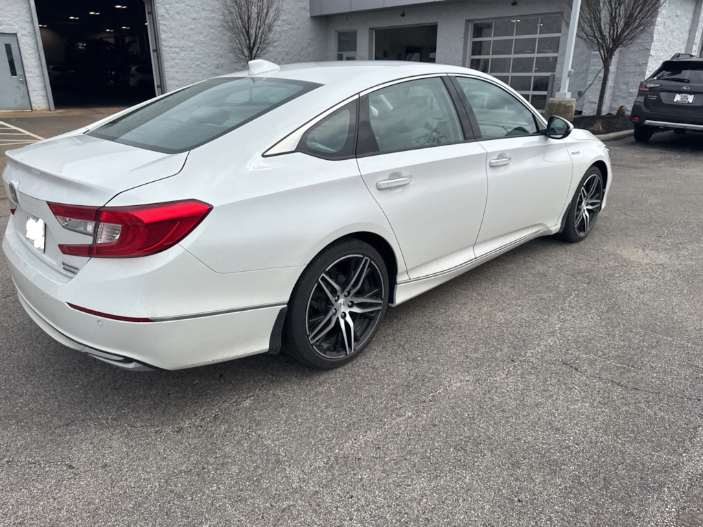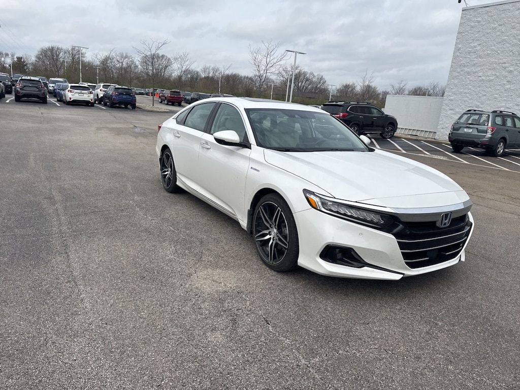 Recent Arrival! 2022 Honda FWD Accord Hybrid Touring eCVT Odometer is 30590 miles below market average! 10 Speakers, 4-Wheel Disc Brakes, ABS brakes, Adaptive Cruise Control: Adaptive Cruise Control (ACC) with Low-Speed Follow, Adaptive suspension, Air Conditioning, Alloy wheels, AM/FM radio: SiriusXM, Apple CarPlay/Android Auto, Auto High-beam Headlights, Auto-dimming Rear-View mirror, Automatic temperature control, Blind Spot Information (BSI) System warning, Brake assist, Bumpers: body-color, Compass, Delay-off headlights, Driver door bin, Driver vanity mirror, Dual front impact airbags, Dual front side impact airbags, Electronic Stability Control, Emergency communication system: HondaLink, Exterior Parking Camera Rear, Forward collision: Collision Mitigation Braking System (CMBS) + FCW mitigation, Four wheel independent suspension, Front anti-roll bar, Front Bucket Seats, Front Center Armrest, Front dual zone A/C, Front fog lights, Front reading lights, Fully automatic headlights, Garage door transmitter: HomeLink, Heads-Up Display, Heated & Ventilated Front Bucket Seats, Heated door mirrors, Heated front seats, Heated rear seats, Illuminated entry, Knee airbag, Lane Departure Warning System, Leather steering wheel, Low tire pressure warning, Memory seat, Navigation system: Honda Satellite-Linked Navigation System, Occupant sensing airbag, Outside temperature display, Overhead airbag, Overhead console, Panic alarm, Passenger door bin, Passenger vanity mirror, Perforated Leather Seat Trim, Power door mirrors, Power driver seat, Power moonroof, Power passenger seat, Power steering, Power windows, Radio data system, Radio: 450-Watt HD Premium Audio System, Rain sensing wipers, Rear anti-roll bar, Rear seat center armrest, Rear window defroster, Remote keyless entry, Security system, Speed control, Speed-sensing steering, Speed-Sensitive Wipers, Split folding rear seat, Steering wheel mounted audio controls, Telescoping steering wheel, Tilt steering wheel, Traction control, Trip computer, Turn signal indicator mirrors, Variably intermittent wipers, Ventilated front seats, and Wheels: 19" Machine-Finished Alloy w/Gray Inserts.