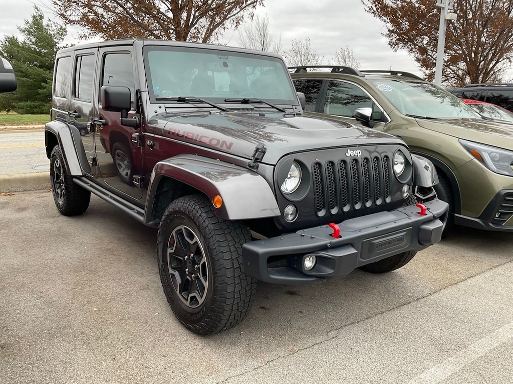 2016 Jeep Granite Crystal Metallic Clearcoat 4WD Wrangler Unlimited Rubicon 5-Speed Automatic Connectivity Group (Leather Wrapped Steering Wheel, Remote USB Port, Tire Pressure Monitoring Display, Uconnect Voice Command w/Bluetooth, and Vehicle Information Center), Max Tow Package (Class II Receiver Hitch and Trailer Tow w/4-Pin Connector Wiring), Quick Order Package 24J Rubicon Hard Rock (Accent Stitching, Alpine 9-Speaker w/All Weather Subwoofer, Black/Chrome Screws Fuel Filler Door, Chrome/Leather Wrapped Shift Knob, Driver Height Adjuster Seat, Front Seat Back Map Pockets, Heated Front Seats, Hood w/Power Dome, Jeep Trail Rated Kit, Leather Trimmed Bucket Seats, Low Gloss Black Wrangler Decal, MOPAR Slush Mats, Premium Black Sunrider Soft Top, Premium EVIC Message Center, Red Front & Rear Tow Hooks, Red Trail Rated Badge, Rubicon Hood Decal, Silver Interior Accents, Steel Front Bumper, Steel Rear Bumper, Sunrider Soft Top, and Wheels: 17" x 7.5" Polished Semi-Gloss Black), Rubicon Hard Rock Package, 17" x 7.5" Polished Mineral Gray Wheels, 3.73 Rear Axle Ratio, 4-Wheel Disc Brakes, 40GB Hard Drive w/28GB Available, 5-Year SiriusXM Travel Link Service, 6.5" Touchscreen Display, 8 Speakers, ABS brakes, Air Conditioning, Air Conditioning w/Auto Temperature Control, Air Filtering, Alloy wheels, AM/FM radio: SiriusXM, Audio Jack Input for Mobile Devices, Auto-dimming Rear-View mirror, Body Color 3-Piece Hard Top, Body Color Fender Flares, Brake assist, CD player, Cloth Seats w/Adjustable Head Restraints, Compass, Driver door bin, Driver vanity mirror, Dual front impact airbags, Electronic Stability Control, Freedom Panel Storage Bag, Front anti-roll bar, Front Bucket Seats, Front Center Armrest w/Storage, Front fog lights, Front reading lights, Fully automatic headlights, GPS Navigation, Heated door mirrors, Humidity Sensor, Illuminated entry, Integrated roll-over protection, Leather steering wheel, Low tire pressure warning, Manufacturer's Statement of Origin, Occupant sensing airbag, Outside temperature display, Panic alarm, Passenger door bin, Passenger vanity mirror, Performance Suspension, Power door mirrors, Power steering, Power windows, Radio data system, Radio: 130, Radio: 430N, Rear anti-roll bar, Rear Window Defroster, Rear Window Wiper/Washer, Remote keyless entry, Remote Start System, Security system, SiriusXM Travel Link, Speed control, Split folding rear seat, Steering wheel mounted audio controls, Tachometer, Tilt steering wheel, Traction control, Trip computer, and Variably intermittent wipers.