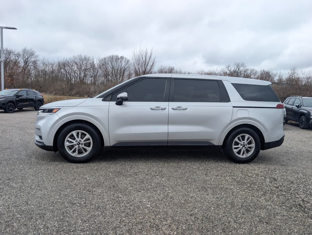 Recent Arrival! 2022 Kia Silky Silver FWD Carnival LXS 8-Speed Automatic 2-Way Power Driver's Lumbar Support, 3.51 Axle Ratio, 3rd row seats: split-bench, 4-Wheel Disc Brakes, 6 Speakers, 8 Way Power Driver's Seat, ABS brakes, Air Conditioning, Alloy wheels, AM/FM radio, Apple CarPlay & Android Auto, Artificial Leather Seat Trim, Auto High-beam Headlights, Brake assist, Bumpers: body-color, Cargo Net, Carpeted Floor Mats (8-Passenger), Delay-off headlights, Driver door bin, Driver vanity mirror, Dual front impact airbags, Dual front side impact airbags, Electronic Stability Control, Four wheel independent suspension, Front anti-roll bar, Front Bucket Seats, Front Center Armrest, Front reading lights, Fully automatic headlights, Heated door mirrors, Heated Front Bucket Seats, Heated front seats, Illuminated entry, Knee airbag, Leather Shift Knob, Leather steering wheel, Low tire pressure warning, Occupant sensing airbag, Outside temperature display, Overhead airbag, Overhead console, Panic alarm, Passenger door bin, Passenger vanity mirror, Power door mirrors, Power driver seat, Power steering, Power windows, Radio: AM/FM Audio System, Rear air conditioning, Rear anti-roll bar, Rear reading lights, Rear window defroster, Rear window wiper, Reclining 3rd row seat, Remote keyless entry, Security system, Speed control, Speed-sensing steering, Split folding rear seat, Spoiler, Steering wheel mounted audio controls, Tachometer, Telescoping steering wheel, Tilt steering wheel, Traction control, Trip computer, Turn signal indicator mirrors, Variably intermittent wipers, and Wheels: 6.5J x 17" Clear Silver Painted Alloy.