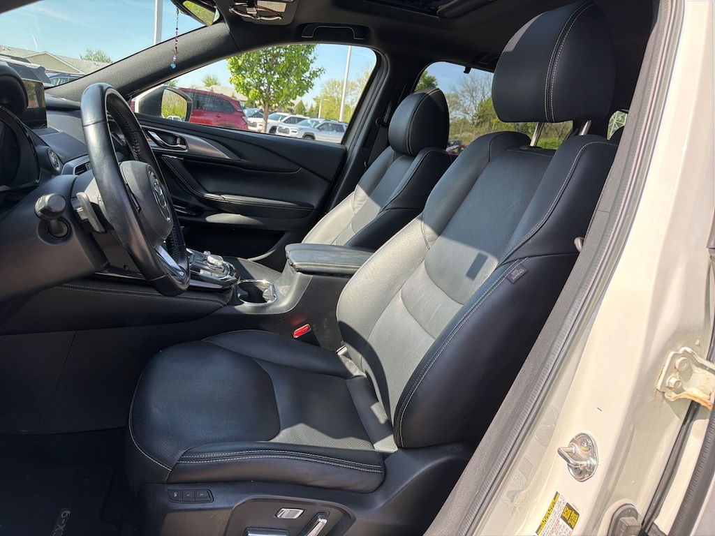 Recent Arrival! 2021 Mazda Snowflake White Pearl Mica AWD CX-9 Grand Touring 6-Speed Automatic Odometer is 6423 miles below market average! 12 Speakers, 2nd-Row Captain's Chairs, 3rd row seats: bench, 4-Wheel Disc Brakes, ABS brakes, Aha Internet Radio, Air Conditioning, Alloy wheels, AM/FM radio: SiriusXM, AppLink/Apple CarPlay and Android Auto, Auto High-beam Headlights, Auto-dimming Rear-View mirror, Automatic temperature control, Axle Ratio: 4.411, Brake assist, Bumpers: body-color, Compass, Delay-off headlights, Driver door bin, Driver vanity mirror, Dual front impact airbags, Dual front side impact airbags, E911 Automatic Emergency Notification, Electronic Stability Control, Emergency communication system: MAZDA CONNECT, Four wheel independent suspension, Front & Rear Splash Guards, Front anti-roll bar, Front Bucket Seats, Front Center Armrest, Front dual zone A/C, Front fog lights, Front reading lights, Fully automatic headlights, Garage door transmitter: HomeLink, Heads-Up Display, Heated door mirrors, Heated front seats, Heated rear seats, Heated steering wheel, Heated/Ventilated Front Bucket Seats, Illuminated entry, Infotainment System Voice Command, Leather Seat Trim, Leather Shift Knob, Leather steering wheel, Low tire pressure warning, Mazda Connected Services, Mazda Navigation System, Memory seat, Navigation System, Occupant sensing airbag, Outside temperature display, Overhead airbag, Overhead console, Pandora Internet Radio, Panic alarm, Passenger door bin, Passenger vanity mirror, Power door mirrors, Power driver seat, Power Liftgate, Power moonroof, Power passenger seat, Power steering, Power windows, Radio Broadcast Data System Program Information, Radio data system, Radio: AM/FM Sound System w/Bose Audio, Rain sensing wipers, Rear air conditioning, Rear anti-roll bar, Rear reading lights, Rear seat center armrest, Rear window defroster, Rear window wiper, Remote keyless entry, Roof Rack & Cross Bars, Roof rack: rails only, SiriusXM Satellite Radio, SMS Text Msg Audio Delivery & Reply, Snowflake White Pearl Mica Paint, Speed control, Speed-sensing steering, Split folding rear seat, Spoiler, Steering wheel mounted audio controls, Stitcher Internet Radio, Tachometer, Telescoping steering wheel, Tilt steering wheel, Traction control, Trip computer, Turn signal indicator mirrors, Variably intermittent wipers, Ventilated front seats, and Wheels: 20" x 8.5J Aluminum Alloy.