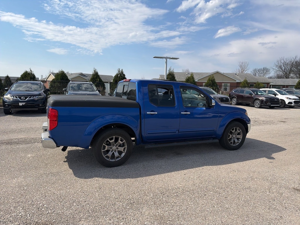 Recent Arrival! Priced below KBB Fair Purchase Price! 2015 Nissan Blue Metallic RWD Frontier SL 5-Speed Automatic with Overdrive Moonroof Package, 10 Speakers, 18" Alloy Wheels, 3.133 Axle Ratio, 4-Wheel Disc Brakes, ABS brakes, Air Conditioning, Alloy wheels, AM/FM radio: SiriusXM, Anti-whiplash front head restraints, Auto-dimming Rear-View mirror, Automatic temperature control, Bodyside moldings, Bumpers: chrome, CD player, Compass, Delay-off headlights, Driver door bin, Driver vanity mirror, Dual front impact airbags, Dual front side impact airbags, Electronic Stability Control, Exterior Parking Camera Rear, Front anti-roll bar, Front Bucket Seats, Front Center Armrest, Front dual zone A/C, Front fog lights, Front reading lights, Front wheel independent suspension, Fully automatic headlights, Garage door transmitter: HomeLink, Heated door mirrors, Heated Front Bucket Seats, Heated front seats, Illuminated entry, Leather Appointed Seat Trim, Low tire pressure warning, Navigation System, Occupant sensing airbag, Outside temperature display, Overhead airbag, Overhead console, Panic alarm, Passenger door bin, Passenger vanity mirror, Power door mirrors, Power driver seat, Power passenger seat, Power steering, Power windows, Radio data system, Radio: Rockford Fosgate Premium Audio System, Rear Parking Sensors, Rear seat center armrest, Rear step bumper, Remote keyless entry, Security system, Speed control, Speed-sensing steering, Split folding rear seat, Steering wheel mounted audio controls, Tachometer, Tilt steering wheel, Traction control, Trip computer, Variably intermittent wipers, and Voltmeter.