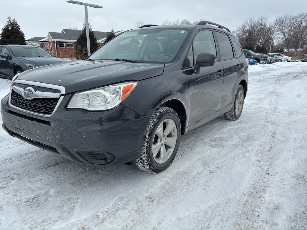 Recent Arrival! 2016 Subaru Dark Gray Metallic AWD Forester 2.5i Premium Lineartronic CVT 17" Alloy Wheels, 3.70 Axle Ratio, 4-Wheel Disc Brakes, 6 Speakers, ABS brakes, Air Conditioning, Alloy wheels, AM/FM radio: SiriusXM, Brake assist, Bumpers: body-color, CD player, Cloth Upholstery, Driver door bin, Driver vanity mirror, Dual front impact airbags, Dual front side impact airbags, Electronic Stability Control, Emergency communication system: STARLINK, Exterior Parking Camera Rear, Four wheel independent suspension, Front anti-roll bar, Front Bucket Seats, Front Center Armrest, Front reading lights, Illuminated entry, Knee airbag, Low tire pressure warning, Occupant sensing airbag, Outside temperature display, Overhead airbag, Overhead console, Panic alarm, Passenger door bin, Passenger vanity mirror, Power door mirrors, Power driver seat, Power moonroof, Power steering, Power windows, Radio data system, Radio: Subaru Starlink 7.0" Multimedia Plus System, Rear anti-roll bar, Rear seat center armrest, Rear window defroster, Rear window wiper, Remote keyless entry, Roof rack: rails only, Security system, Speed control, Split folding rear seat, Steering wheel mounted audio controls, Tachometer, Telescoping steering wheel, Tilt steering wheel, Traction control, Trip computer, and Variably intermittent wipers.