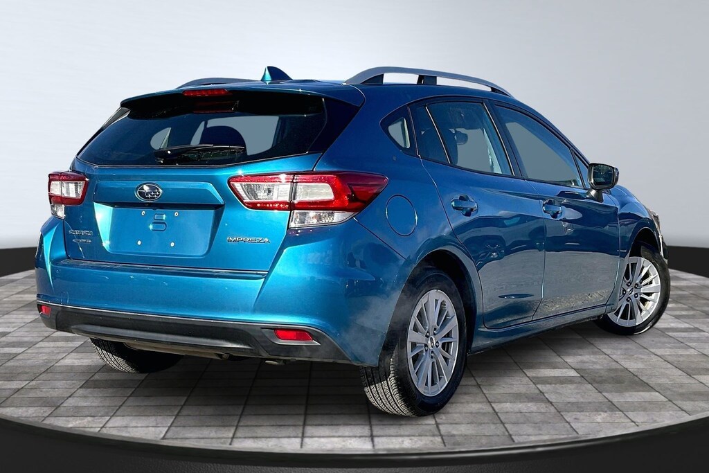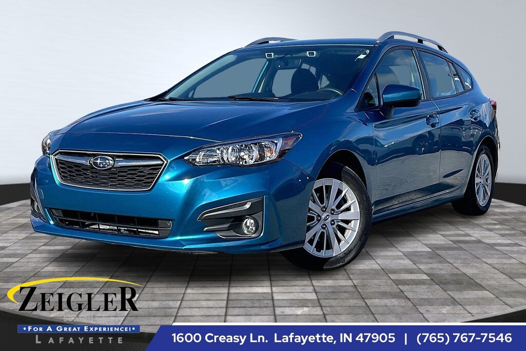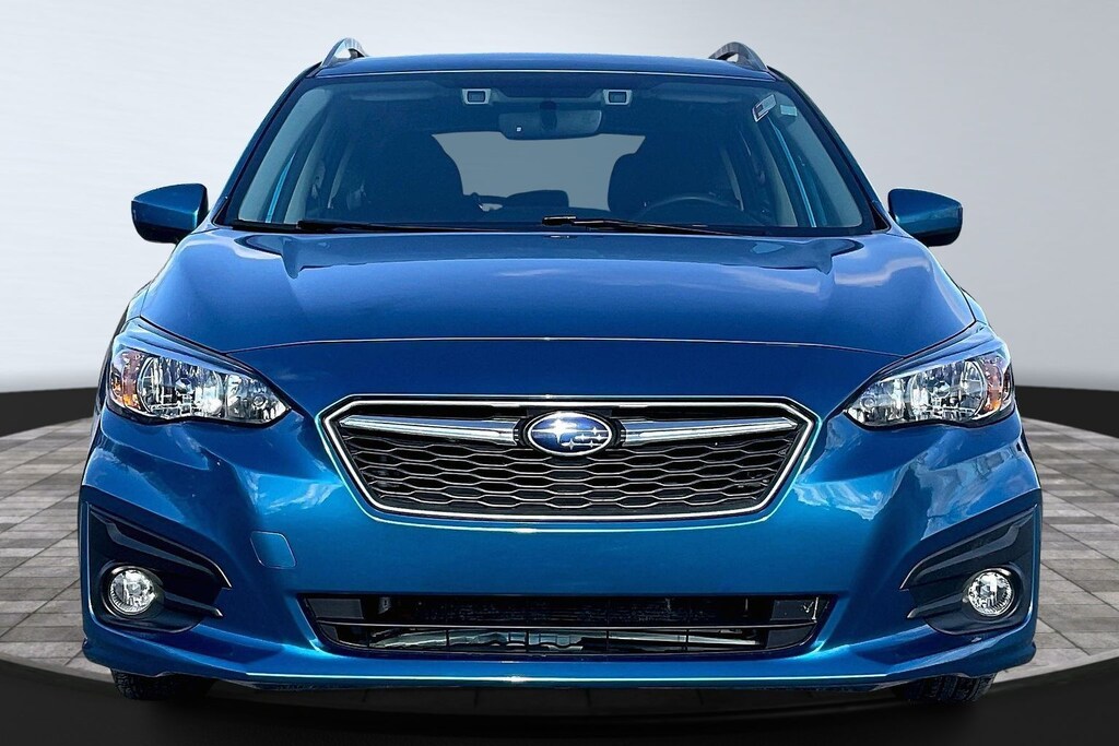 2018 Subaru Island Blue Pearl AWD Impreza 2.0i Premium CVT Lineartronic EyeSight & BSD & RCTA (Blind Spot Detection, EyeSight System, Rear Cross Traffic Alert, and Steering Responsive Fog Lights (SRF)), 16" Alloy Wheels, 4-Wheel Disc Brakes, 6 Speakers, ABS brakes, Air Conditioning, All Weather Floor Mats (DISC), Alloy wheels, AM/FM radio, Apple CarPlay/Android Auto, Auto-Dimming Mirror w/Compass & HomeLink, Brake assist, Bumpers: body-color, Cargo Net, Cargo Tray, Cloth Upholstery, Delay-off headlights, Driver door bin, Driver vanity mirror, Dual front impact airbags, Dual front side impact airbags, Electronic Stability Control, Emergency communication system: STARLINK, Exterior Parking Camera Rear, Four wheel independent suspension, Front anti-roll bar, Front Bucket Seats, Front Center Armrest, Front reading lights, Fully automatic headlights, Heated door mirrors, Heated Front Bucket Seats, Heated front seats, Illuminated entry, Knee airbag, Low tire pressure warning, Occupant sensing airbag, Outside temperature display, Overhead airbag, Panic alarm, Passenger door bin, Passenger vanity mirror, Power door mirrors, Power steering, Power windows, Radio data system, Radio: Subaru Starlink 6.5" Multimedia System, Rear anti-roll bar, Rear Bumper Applique, Rear Seatback Protector, Rear window defroster, Rear window wiper, Remote keyless entry, Roof rack: rails only, Security system, Speed control, Speed-sensing steering, Split folding rear seat, Spoiler, Steering wheel mounted audio controls, Tachometer, Telescoping steering wheel, Tilt steering wheel, Traction control, Trip computer, and Variably intermittent wipers.