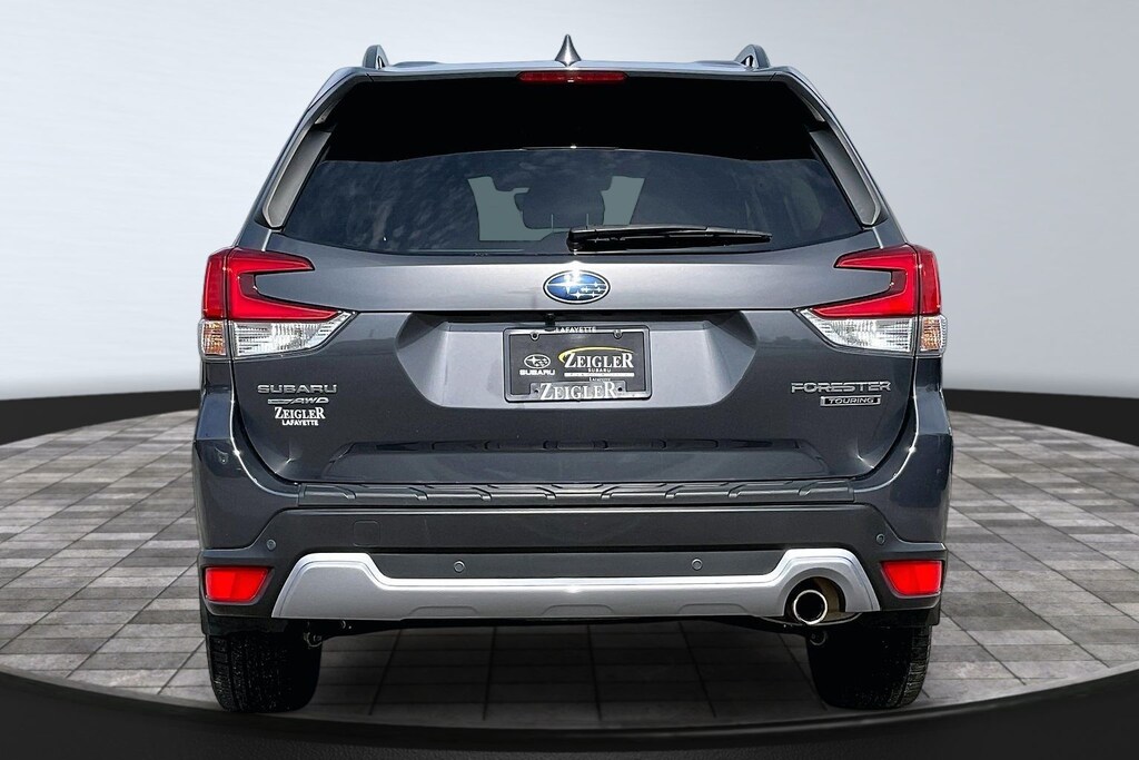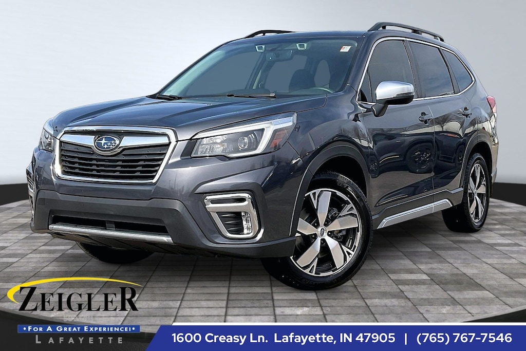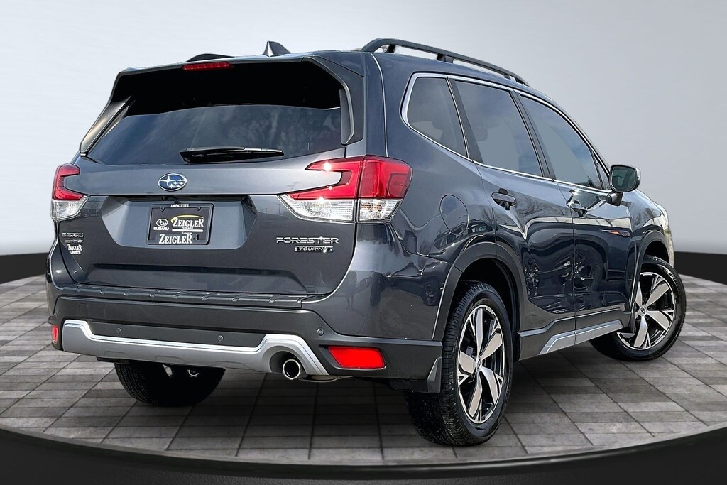 2021 Subaru Magnetite Gray Metallic AWD Forester Touring Lineartronic CVT 3.70 Axle Ratio, 4-Wheel Disc Brakes, 9 Speakers, ABS brakes, Air Conditioning, Alloy wheels, AM/FM radio: SiriusXM, Auto High-beam Headlights, Automatic temperature control, Brake assist, Bumpers: body-color, CD player, Driver door bin, Driver vanity mirror, Dual front impact airbags, Dual front side impact airbags, Electronic Stability Control, Emergency communication system: STARLINK Safety and Security (Subscription Required), Exterior Parking Camera Rear, Four wheel independent suspension, Front anti-roll bar, Front Bucket Seats, Front Center Armrest, Front dual zone A/C, Front fog lights, Front reading lights, Fully automatic headlights, harman kardon 576W Amp & Speaker System, harman/kardon® Speakers, Heated door mirrors, Heated Front Bucket Seats, Heated front seats, Heated rear seats, Heated steering wheel, HVAC memory, Illuminated entry, Knee airbag, Leather Shift Knob, Low tire pressure warning, Memory seat, Navigation System, Occupant sensing airbag, Outside temperature display, Overhead airbag, Overhead console, Paddle-Shift Control Switches, Panic alarm, Passenger door bin, Passenger vanity mirror, Perforated Leather-Trimmed Upholstery, Power door mirrors, Power driver seat, Power Liftgate, Power moonroof: Panoramic, Power passenger seat, Power steering, Power windows, Premium audio system: harman/kardon, Radio data system, Radio: Subaru Starlink 8.0" Multimedia Nav System, Rear anti-roll bar, Rear seat center armrest, Rear window defroster, Rear window wiper, Remote keyless entry, Roof rack: rails only, Security system, Speed control, Speed-sensing steering, Split folding rear seat, Spoiler, STARLINK/Apple CarPlay/Android Auto, Steering wheel mounted audio controls, Tachometer, Telescoping steering wheel, Tilt steering wheel, Traction control, Trip computer, Turn signal indicator mirrors, Variably intermittent wipers, and Wheels: 18" x 7.0J Blk Machine Touring Alum Alloy.