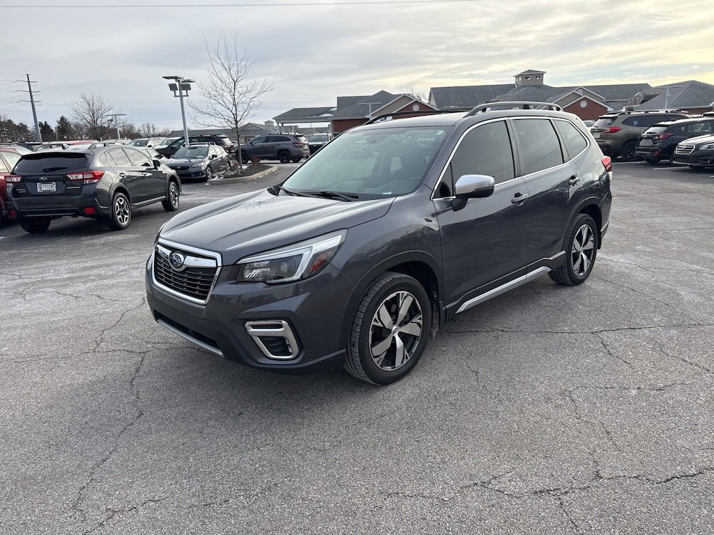 Recent Arrival! 2021 Subaru Magnetite Gray Metallic AWD Forester Touring Lineartronic CVT 3.70 Axle Ratio, 4-Wheel Disc Brakes, 9 Speakers, ABS brakes, Air Conditioning, Alloy wheels, AM/FM radio: SiriusXM, Auto High-beam Headlights, Automatic temperature control, Brake assist, Bumpers: body-color, CD player, Driver door bin, Driver vanity mirror, Dual front impact airbags, Dual front side impact airbags, Electronic Stability Control, Emergency communication system: STARLINK Safety and Security (Subscription Required), Exterior Parking Camera Rear, Four wheel independent suspension, Front anti-roll bar, Front Bucket Seats, Front Center Armrest, Front dual zone A/C, Front fog lights, Front reading lights, Fully automatic headlights, harman kardon 576W Amp & Speaker System, harman/kardon® Speakers, Heated door mirrors, Heated Front Bucket Seats, Heated front seats, Heated rear seats, Heated steering wheel, HVAC memory, Illuminated entry, Knee airbag, Leather Shift Knob, Low tire pressure warning, Memory seat, Navigation System, Occupant sensing airbag, Outside temperature display, Overhead airbag, Overhead console, Paddle-Shift Control Switches, Panic alarm, Passenger door bin, Passenger vanity mirror, Perforated Leather-Trimmed Upholstery, Power door mirrors, Power driver seat, Power Liftgate, Power moonroof: Panoramic, Power passenger seat, Power steering, Power windows, Premium audio system: harman/kardon, Radio data system, Radio: Subaru Starlink 8.0" Multimedia Nav System, Rear anti-roll bar, Rear seat center armrest, Rear window defroster, Rear window wiper, Remote keyless entry, Roof rack: rails only, Security system, Speed control, Speed-sensing steering, Split folding rear seat, Spoiler, STARLINK/Apple CarPlay/Android Auto, Steering wheel mounted audio controls, Tachometer, Telescoping steering wheel, Tilt steering wheel, Traction control, Trip computer, Turn signal indicator mirrors, Variably intermittent wipers, and Wheels: 18" x 7.0J Blk Machine Touring Alum Alloy.