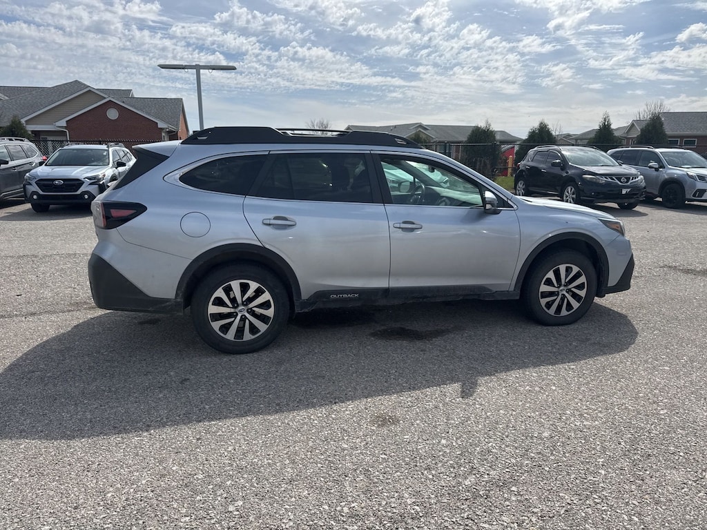Recent Arrival! 2021 Subaru Certified. Ice Silver Metallic AWD Outback Premium CVT Lineartronic 3.90 Axle Ratio, 4-Wheel Disc Brakes, 6 Speakers, ABS brakes, Air Conditioning, Alloy wheels, AM/FM radio: SiriusXM, Auto High-beam Headlights, Automatic temperature control, Brake assist, Bumpers: body-color, Cloth Upholstery, Driver door bin, Driver vanity mirror, Dual front impact airbags, Dual front side impact airbags, Electronic Stability Control, Emergency communication system: STARLINK Safety and Security (Subscription Required), Exterior Parking Camera Rear, Four wheel independent suspension, Front anti-roll bar, Front Bucket Seats, Front Center Armrest w/Storage, Front dual zone A/C, Front fog lights, Front reading lights, Fully automatic headlights, Heated door mirrors, Heated Front Bucket Seats, Heated front seats, Illuminated entry, Knee airbag, Leather steering wheel, Low tire pressure warning, Occupant sensing airbag, Outside temperature display, Overhead airbag, Overhead console, Panic alarm, Passenger door bin, Passenger vanity mirror, Power door mirrors, Power driver seat, Power steering, Power windows, Radio: Subaru STARLINK 11.6" Multimedia Plus Sys, Rear anti-roll bar, Rear seat center armrest, Rear window defroster, Rear window wiper, Remote keyless entry, Roof rack, Security system, Speed control, Speed-sensing steering, Split folding rear seat, Spoiler, STARLINK/Apple CarPlay/Android Auto, Steering wheel mounted audio controls, Steering Wheel Paddle Shift Control Switches, Tachometer, Telescoping steering wheel, Tilt steering wheel, Traction control, Trip computer, Turn signal indicator mirrors, Variably intermittent wipers, and Wheels: 17" x 7J Black Aluminum Alloy.