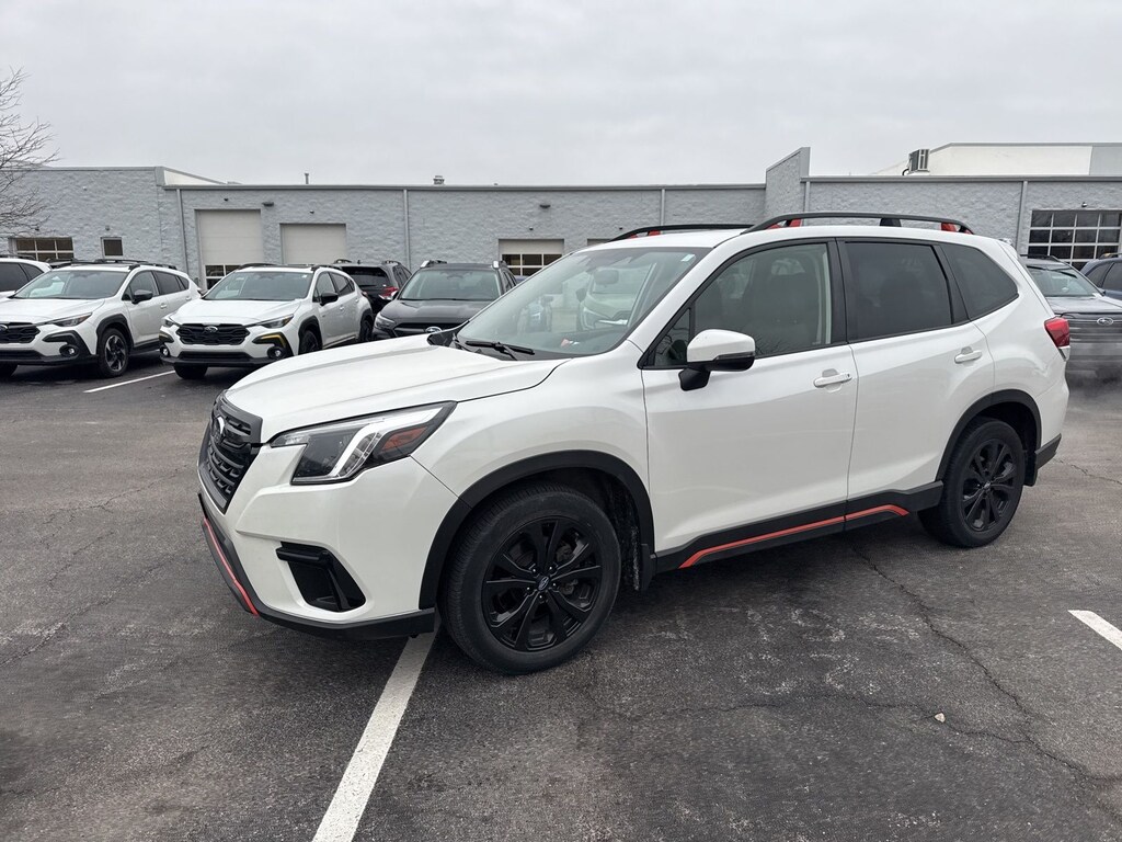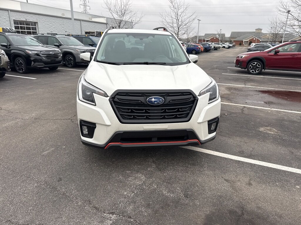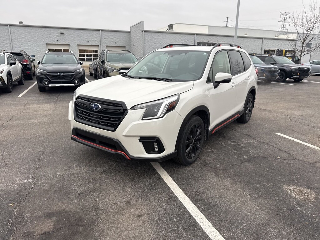 Recent Arrival! Priced below KBB Fair Purchase Price! 2023 Subaru Crystal White Pearl AWD Forester Sport Lineartronic CVT 3.70 Axle Ratio, 4-Wheel Disc Brakes, 6 Speakers, ABS brakes, Air Conditioning, Alloy wheels, AM/FM radio: SiriusXM, Anti-whiplash front head restraints, Auto High-beam Headlights, Automatic temperature control, Brake assist, Bumpers: body-color, CD player, Driver door bin, Driver vanity mirror, Dual front impact airbags, Dual front side impact airbags, Electronic Stability Control, Emergency communication system: STARLINK Safety and Security (Subscription Required), Exterior Parking Camera Rear, Four wheel independent suspension, Front anti-roll bar, Front Bucket Seats, Front Center Armrest, Front fog lights, Front reading lights, Fully automatic headlights, Heated door mirrors, Heated Front Bucket Seats, Heated front seats, Illuminated entry, Knee airbag, Leather Shift Knob, Low tire pressure warning, Occupant sensing airbag, Outside temperature display, Overhead airbag, Overhead console, Panic alarm, Passenger door bin, Passenger vanity mirror, Power door mirrors, Power driver seat, Power moonroof: Panoramic, Power steering, Power windows, Radio data system, Radio: Subaru Starlink 6.5" Multimedia Plus System, Rear anti-roll bar, Rear seat center armrest, Rear window defroster, Rear window wiper, Remote keyless entry, Roof rack: rails only, Security system, Speed control, Speed-sensing steering, Split folding rear seat, Spoiler, Sport Cloth Upholstery, STARLINK/Apple CarPlay/Android Auto, Steering wheel mounted audio controls, Tachometer, Telescoping steering wheel, Tilt steering wheel, Traction control, Trip computer, Turn signal indicator mirrors, Variably intermittent wipers, and Wheels: 18" x 7.0 J Black Finish Aluminum-Alloy.