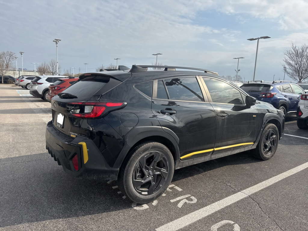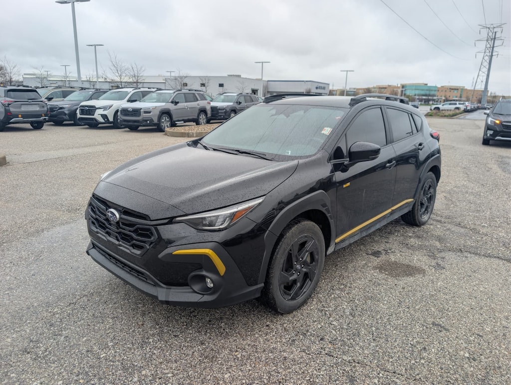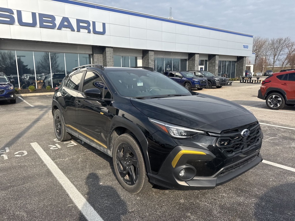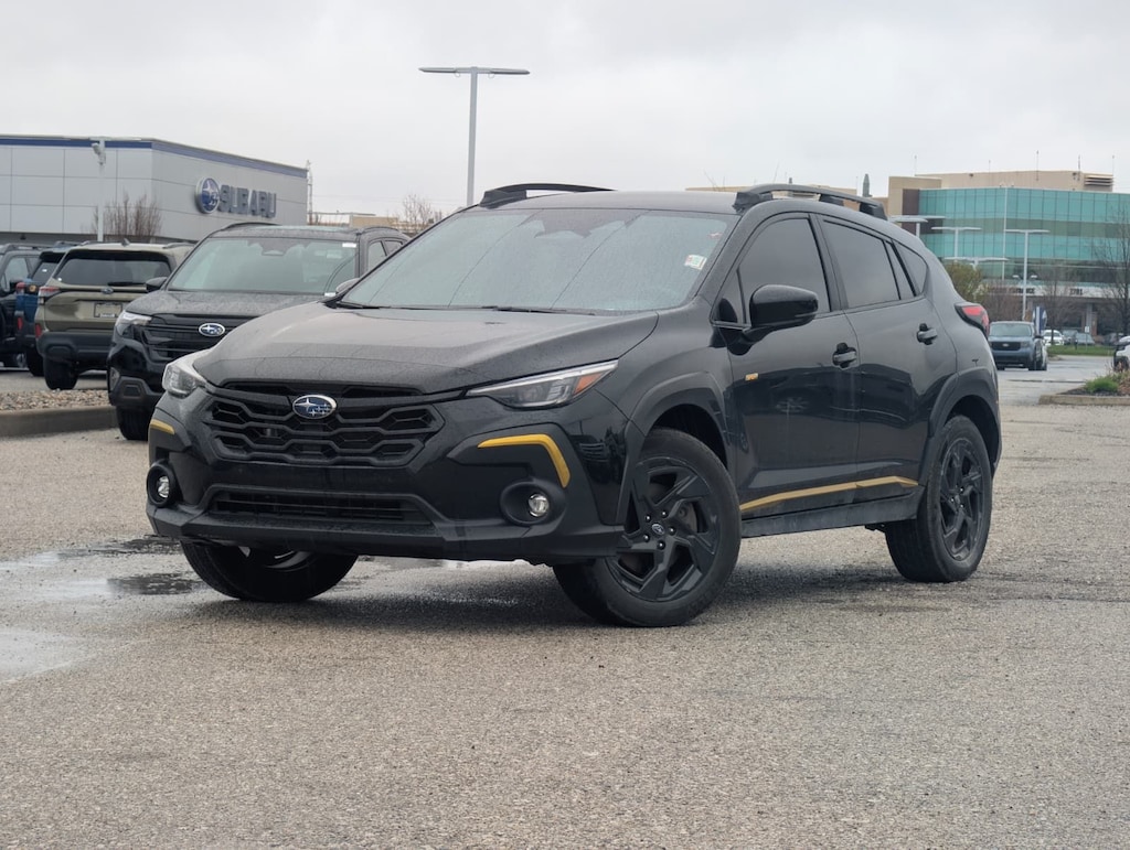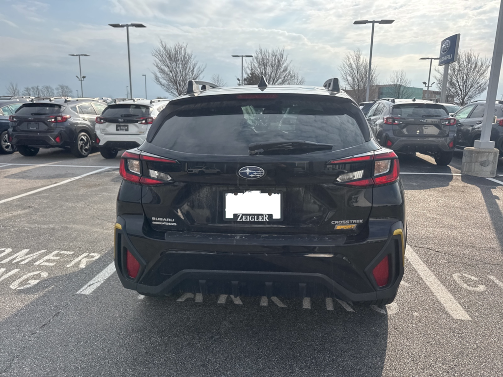 Recent Arrival! 2024 Subaru Black AWD Crosstrek Sport Lineartronic CVT 3.70 Axle Ratio, 4-Wheel Disc Brakes, 6 Speakers, ABS brakes, Air Conditioning, Alloy wheels, AM/FM radio: SiriusXM, Anti-whiplash front head restraints, Auto High-beam Headlights, Automatic temperature control, Brake assist, Bumpers: body-color, Driver door bin, Driver vanity mirror, Dual front impact airbags, Dual front side impact airbags, Electronic Stability Control, Emergency communication system: STARLINK Safety and Security (Subscription Required), Exterior Parking Camera Rear, Four wheel independent suspension, Front anti-roll bar, Front Bucket Seats, Front Center Armrest, Front dual zone A/C, Front fog lights, Front reading lights, Fully automatic headlights, Heated door mirrors, Heated Front Bucket Seats, Heated front seats, Illuminated entry, Knee airbag, Leather Shift Knob, Low tire pressure warning, Occupant sensing airbag, Outside temperature display, Overhead airbag, Overhead console, Panic alarm, Passenger door bin, Passenger vanity mirror, Power door mirrors, Power steering, Power windows, Radio data system, Radio: Subaru STARLINK 11.6" Multimedia Plus Sys, Rear anti-roll bar, Rear seat center armrest, Rear window defroster, Rear window wiper, Remote keyless entry, Security system, Speed control, Speed-sensing steering, Split folding rear seat, Spoiler, Sport Cloth Upholstery, STARLINK/Apple CarPlay/Android Auto, Steering wheel mounted audio controls, Tachometer, Telescoping steering wheel, Tilt steering wheel, Traction control, Trip computer, Turn signal indicator mirrors, Variably intermittent wipers, and Wheels: 18" x 7.0J Dark Gray Aluminum Alloy.