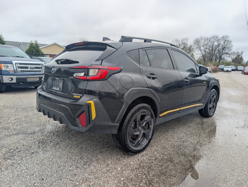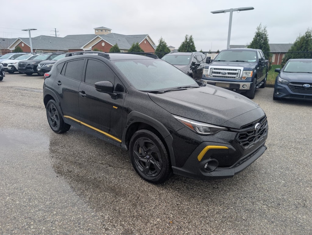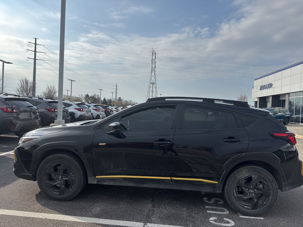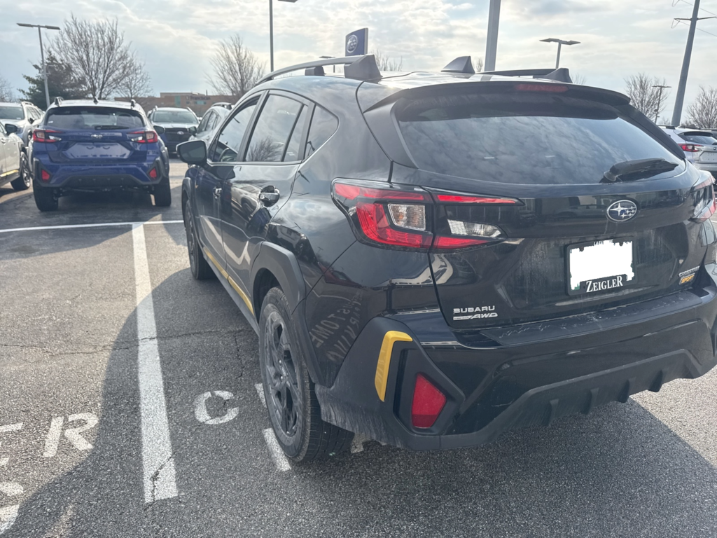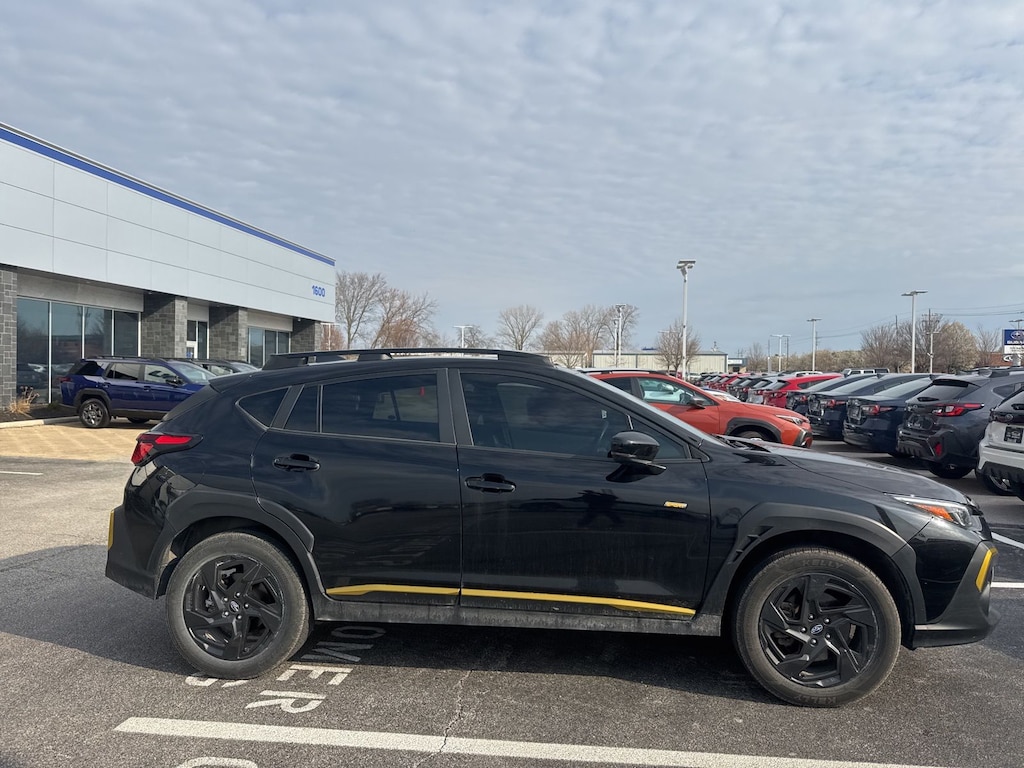 Recent Arrival! 2024 Subaru Black AWD Crosstrek Sport Lineartronic CVT 3.70 Axle Ratio, 4-Wheel Disc Brakes, 6 Speakers, ABS brakes, Air Conditioning, Alloy wheels, AM/FM radio: SiriusXM, Anti-whiplash front head restraints, Auto High-beam Headlights, Automatic temperature control, Brake assist, Bumpers: body-color, Driver door bin, Driver vanity mirror, Dual front impact airbags, Dual front side impact airbags, Electronic Stability Control, Emergency communication system: STARLINK Safety and Security (Subscription Required), Exterior Parking Camera Rear, Four wheel independent suspension, Front anti-roll bar, Front Bucket Seats, Front Center Armrest, Front dual zone A/C, Front fog lights, Front reading lights, Fully automatic headlights, Heated door mirrors, Heated Front Bucket Seats, Heated front seats, Illuminated entry, Knee airbag, Leather Shift Knob, Low tire pressure warning, Occupant sensing airbag, Outside temperature display, Overhead airbag, Overhead console, Panic alarm, Passenger door bin, Passenger vanity mirror, Power door mirrors, Power steering, Power windows, Radio data system, Radio: Subaru STARLINK 11.6" Multimedia Plus Sys, Rear anti-roll bar, Rear seat center armrest, Rear window defroster, Rear window wiper, Remote keyless entry, Security system, Speed control, Speed-sensing steering, Split folding rear seat, Spoiler, Sport Cloth Upholstery, STARLINK/Apple CarPlay/Android Auto, Steering wheel mounted audio controls, Tachometer, Telescoping steering wheel, Tilt steering wheel, Traction control, Trip computer, Turn signal indicator mirrors, Variably intermittent wipers, and Wheels: 18" x 7.0J Dark Gray Aluminum Alloy.