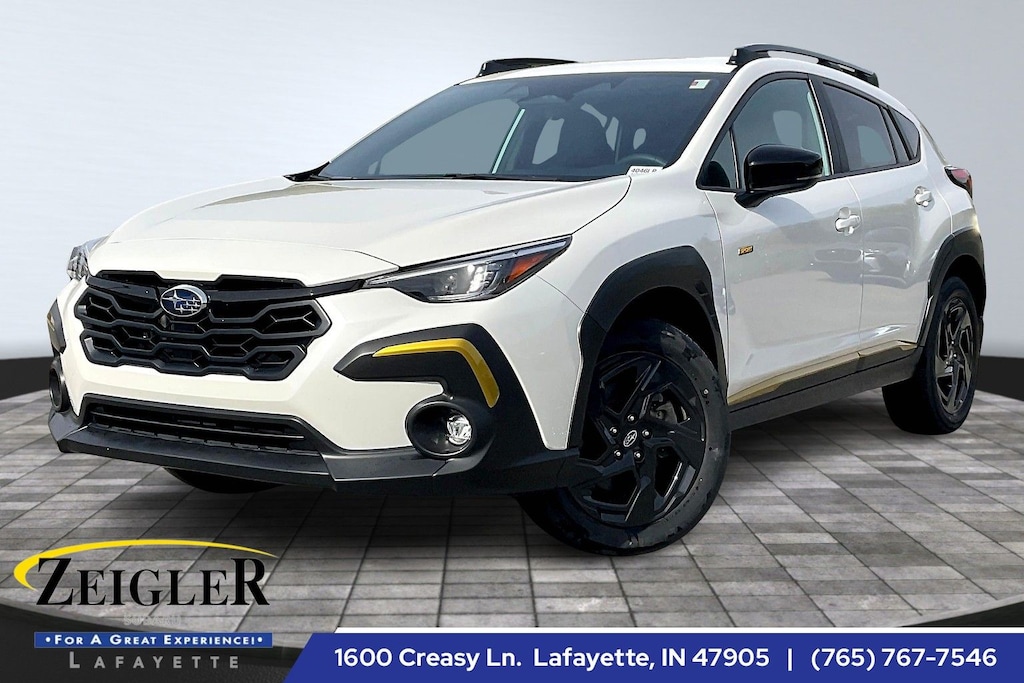 Priced below KBB Fair Purchase Price! 2024 Subaru Crystal White Pearl AWD Crosstrek Sport Lineartronic CVT Odometer is 7777 miles below market average! 3.70 Axle Ratio, 4-Wheel Disc Brakes, 6 Speakers, ABS brakes, Air Conditioning, Alloy wheels, AM/FM radio: SiriusXM, Anti-whiplash front head restraints, Auto High-beam Headlights, Automatic temperature control, Brake assist, Bumpers: body-color, Driver door bin, Driver vanity mirror, Dual front impact airbags, Dual front side impact airbags, Electronic Stability Control, Emergency communication system: STARLINK Safety and Security (Subscription Required), Exterior Parking Camera Rear, Four wheel independent suspension, Front anti-roll bar, Front Bucket Seats, Front Center Armrest, Front dual zone A/C, Front fog lights, Front reading lights, Fully automatic headlights, Heated door mirrors, Heated Front Bucket Seats, Heated front seats, Illuminated entry, Knee airbag, Leather Shift Knob, Low tire pressure warning, Occupant sensing airbag, Outside temperature display, Overhead airbag, Overhead console, Panic alarm, Passenger door bin, Passenger vanity mirror, Power door mirrors, Power steering, Power windows, Radio data system, Radio: Subaru STARLINK 11.6" Multimedia Plus Sys, Rear anti-roll bar, Rear seat center armrest, Rear window defroster, Rear window wiper, Remote keyless entry, Security system, Speed control, Speed-sensing steering, Split folding rear seat, Spoiler, Sport Cloth Upholstery, STARLINK/Apple CarPlay/Android Auto, Steering wheel mounted audio controls, Tachometer, Telescoping steering wheel, Tilt steering wheel, Traction control, Trip computer, Turn signal indicator mirrors, Variably intermittent wipers, and Wheels: 18" x 7.0J Dark Gray Aluminum Alloy.
