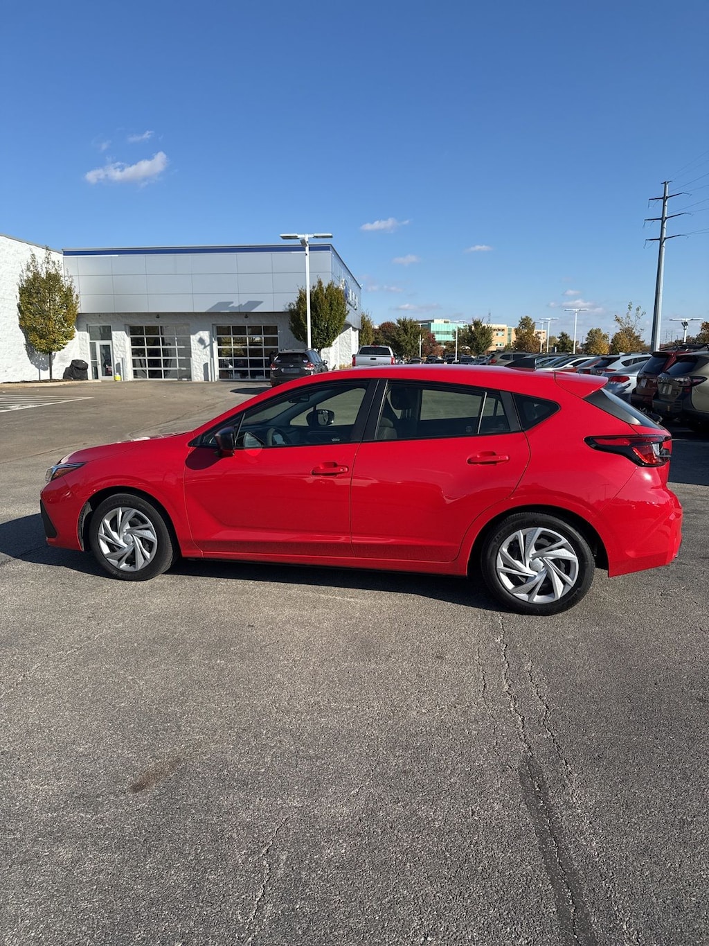 Recent Arrival! 2024 Subaru Certified. Red AWD Impreza CVT Lineartronic 4 Speakers, 4-Wheel Disc Brakes, ABS brakes, Air Conditioning, AM/FM radio: SiriusXM, Anti-whiplash front head restraints, Auto High-beam Headlights, Automatic temperature control, Brake assist, Bumpers: body-color, Cloth Upholstery, Driver door bin, Driver vanity mirror, Dual front impact airbags, Dual front side impact airbags, Electronic Stability Control, Exterior Parking Camera Rear, Four wheel independent suspension, Front anti-roll bar, Front Bucket Seats, Front Center Armrest, Front dual zone A/C, Front reading lights, Fully automatic headlights, Illuminated entry, Knee airbag, Low tire pressure warning, Occupant sensing airbag, Outside temperature display, Overhead airbag, Overhead console, Panic alarm, Passenger door bin, Passenger vanity mirror, Power door mirrors, Power steering, Power windows, Radio data system, Radio: Subaru STARLINK Dual 7.0" Multimedia System, Rear window defroster, Rear window wiper, Remote keyless entry, Security system, Speed control, Speed-sensing steering, Split folding rear seat, Spoiler, STARLINK/Apple CarPlay/Android Auto, Steering wheel mounted audio controls, Tachometer, Telescoping steering wheel, Tilt steering wheel, Traction control, Trip computer, Variably intermittent wipers, and Wheels: 16" x 6.0" Full Cap 1/2 J Steel.
