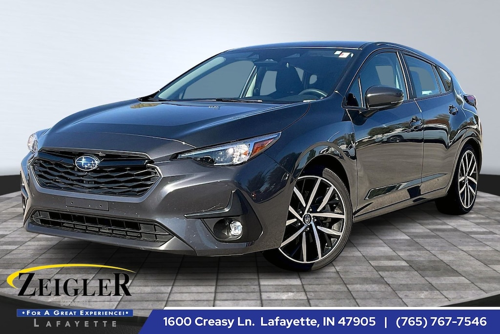 Priced below KBB Fair Purchase Price! 2024 Subaru Certified. Magnetite Gray Metallic AWD Impreza Sport CVT Lineartronic Odometer is 6990 miles below market average! Standard Model, 4-Wheel Disc Brakes, 6 Speakers, ABS brakes, Air Conditioning, All-Weather Floor Liners, Alloy wheels, AM/FM radio: SiriusXM, Anti-whiplash front head restraints, Auto High-beam Headlights, Automatic temperature control, Brake assist, Bumpers: body-color, Cargo Tray, Driver door bin, Driver vanity mirror, Dual front impact airbags, Dual front side impact airbags, Electronic Stability Control, Emergency communication system: STARLINK Safety and Security (Subscription Required), Exterior Parking Camera Rear, Four wheel independent suspension, Front anti-roll bar, Front Bucket Seats, Front Center Armrest, Front dual zone A/C, Front fog lights, Front reading lights, Fully automatic headlights, Illuminated entry, Knee airbag, LED Upgrade, Low tire pressure warning, Occupant sensing airbag, Outside temperature display, Overhead airbag, Overhead console, Panic alarm, Passenger door bin, Passenger vanity mirror, Power door mirrors, Power steering, Power windows, Radio data system, Radio: Subaru STARLINK 11.6" Multimedia Plus Sys, Rear anti-roll bar, Rear Bumper Applique, Rear seat center armrest, Rear Seatback Protector, Rear window defroster, Rear window wiper, Remote keyless entry, Security system, Speed control, Speed-sensing steering, Split folding rear seat, Spoiler, Sport Cloth Upholstery, STARLINK/Apple CarPlay/Android Auto, Steering wheel mounted audio controls, Tachometer, Telescoping steering wheel, Tilt steering wheel, Traction control, Trip computer, Turn signal indicator mirrors, Variably intermittent wipers, and Wheels: 18" x 7.0" Machine Finish J Aluminum-Alloy.