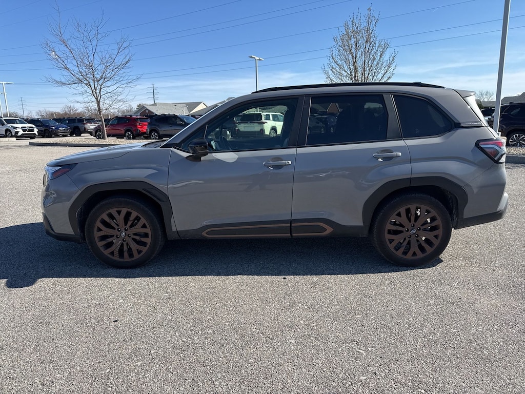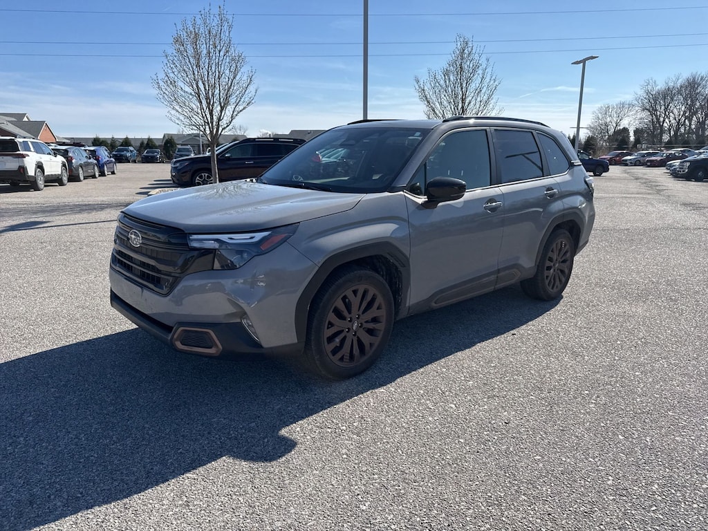 Recent Arrival! 2025 Subaru Certified. River Rock Pearl AWD Forester Sport Lineartronic CVT 4-Wheel Disc Brakes, 6 Speakers, ABS brakes, Air Conditioning, Alloy wheels, AM/FM radio: SiriusXM with 360L, Anti-whiplash front head restraints, Auto High-beam Headlights, Automatic temperature control, Brake assist, Bumpers: body-color, Driver door bin, Driver vanity mirror, Dual front impact airbags, Dual front side impact airbags, Electronic Stability Control, Emergency communication system: MySubaru Safety (3-year free trial), Exterior Parking Camera Rear, Four wheel independent suspension, Front anti-roll bar, Front Bucket Seats, Front Center Armrest, Front dual zone A/C, Front fog lights, Front reading lights, Fully automatic headlights, Heated door mirrors, Heated Front Bucket Seats, Heated front seats, Illuminated entry, Knee airbag, Leather steering wheel, Low tire pressure warning, Occupant sensing airbag, Outside temperature display, Overhead airbag, Overhead console, Panic alarm, Passenger door bin, Passenger vanity mirror, Power door mirrors, Power driver seat, Power moonroof: Panoramic, Power steering, Power windows, Radio data system, Radio: Subaru 11.6" Multimedia Plus System, Rear anti-roll bar, Rear seat center armrest, Rear window defroster, Rear window wiper, Remote keyless entry, Security system, Speed control, Speed-sensing steering, Split folding rear seat, Spoiler, Sport StarTex Upholstery, Steering wheel mounted audio controls, Tachometer, Telescoping steering wheel, Tilt steering wheel, Traction control, Trip computer, Turn signal indicator mirrors, Variably intermittent wipers, and Wheels: 19" x 7.5 J Bronze Finish Aluminum-Alloy.