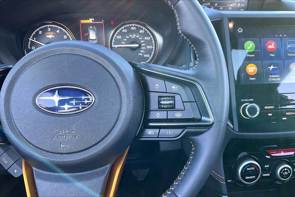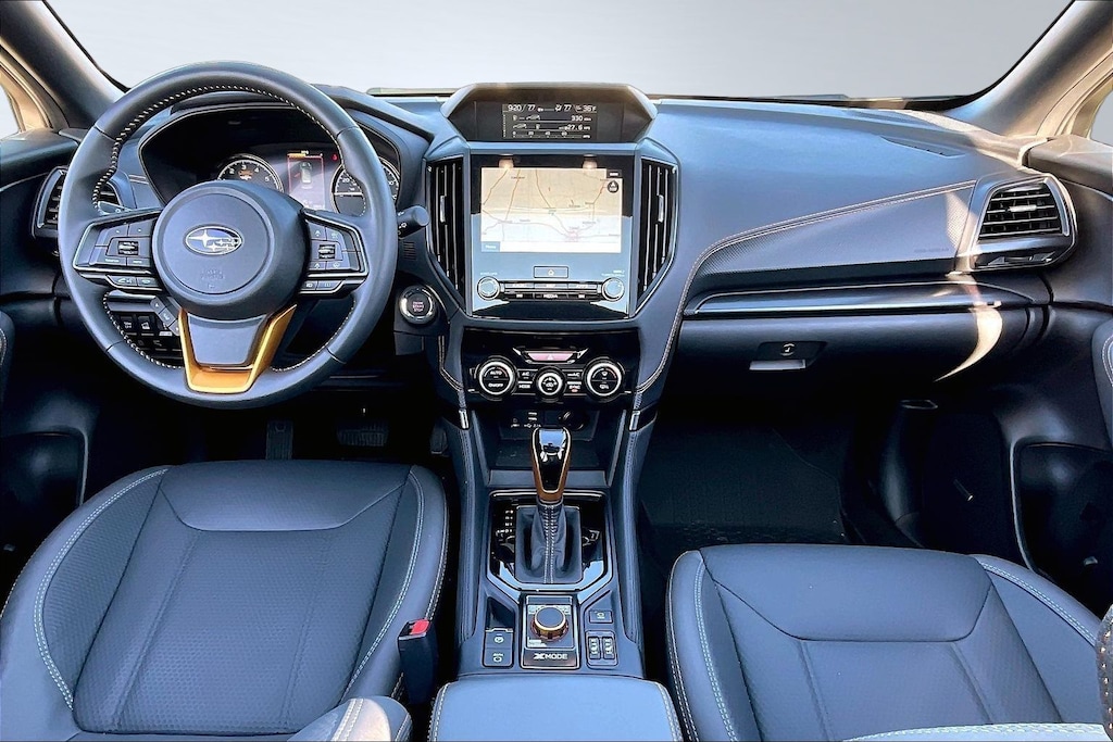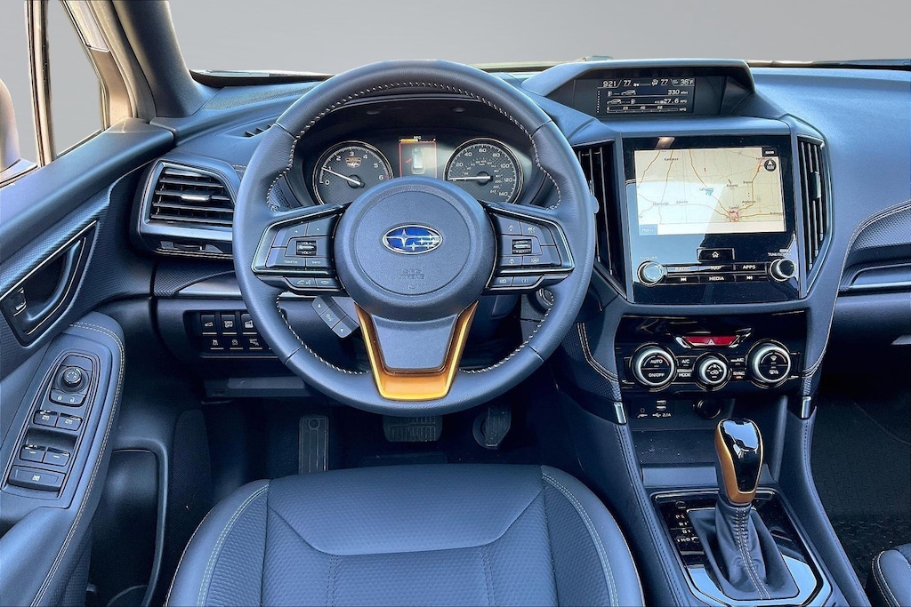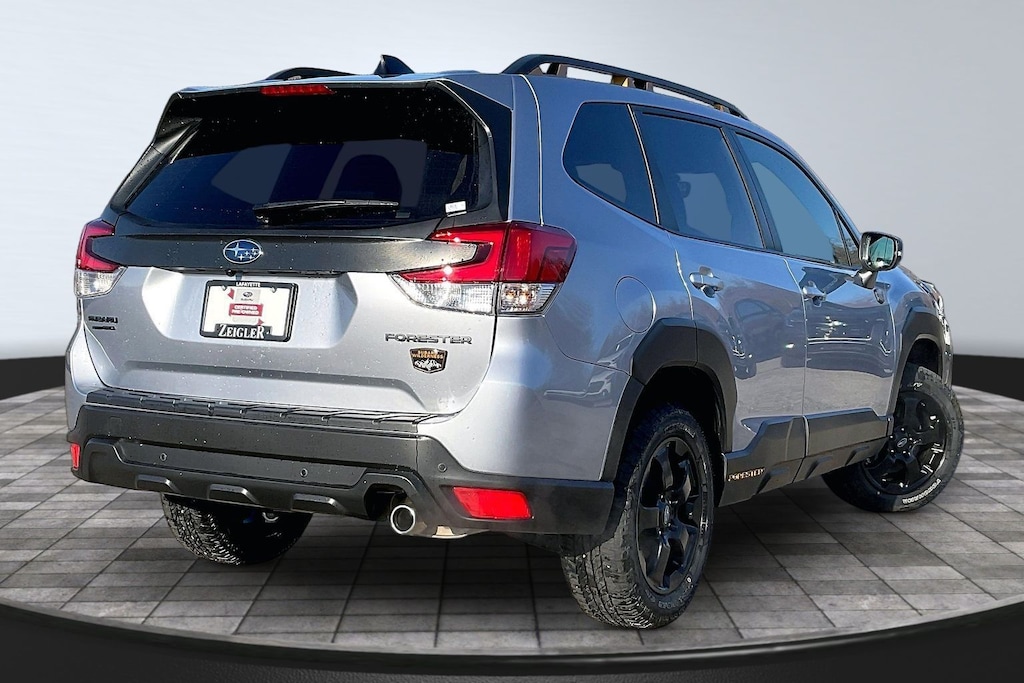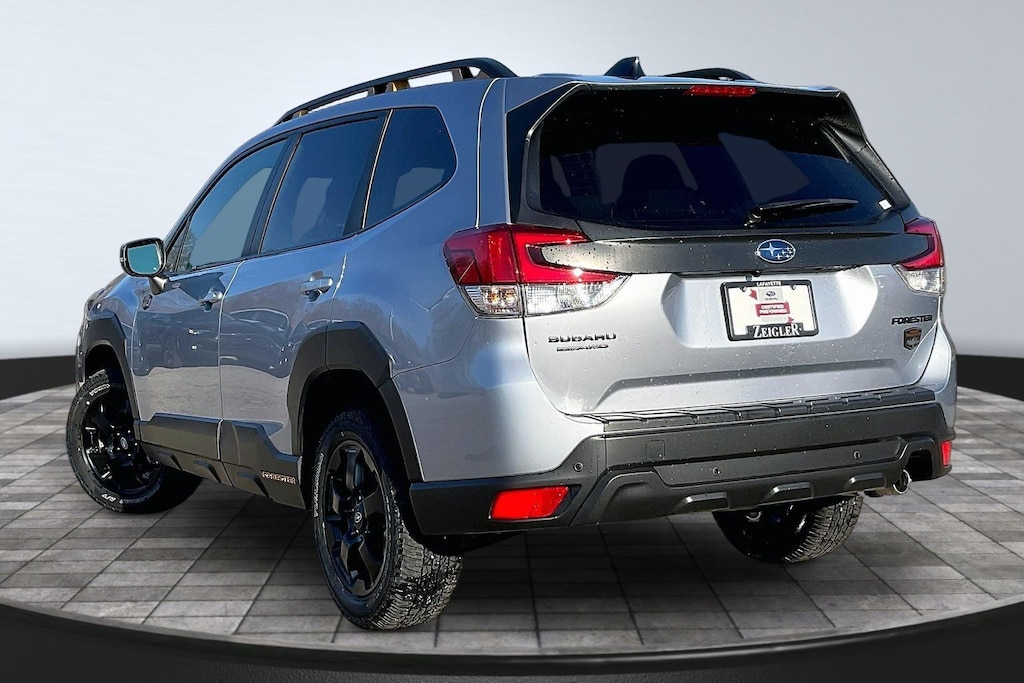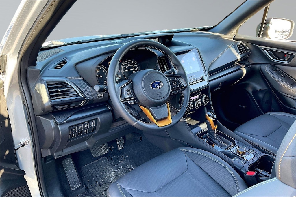 2025 Subaru Certified. Ice Silver Metallic AWD Forester Wilderness Lineartronic CVT Odometer is 1527 miles below market average! Harman/kardon Audio & Power Rear Gate (Power Rear Gate and Radio: Subaru 8.0" Multimedia Navigation System), 4-Wheel Disc Brakes, 6 Speakers, ABS brakes, Air Conditioning, Alloy wheels, AM/FM radio: SiriusXM, Anti-whiplash front head restraints, Auto High-beam Headlights, Auto-Dimming Mirror w/Compass & HomeLink, Automatic temperature control, Brake assist, Bumpers: body-color, Cargo Net, Carpeted Floor Mats - Wilderness, Driver door bin, Driver vanity mirror, Dual front impact airbags, Dual front side impact airbags, Electronic Stability Control, Emergency communication system: MySubaru Safety (3-year free trial), Exterior Parking Camera Rear, Four wheel independent suspension, Front anti-roll bar, Front Bucket Seats, Front Center Armrest, Front dual zone A/C, Front fog lights, Front reading lights, Fully automatic headlights, Heated door mirrors, Heated Front Bucket Seats, Heated front seats, Illuminated entry, Knee airbag, Leather Shift Knob, Leather steering wheel, LED Upgrade, Low tire pressure warning, Occupant sensing airbag, Outside temperature display, Overhead airbag, Overhead console, Panic alarm, Passenger door bin, Passenger vanity mirror, Power door mirrors, Power driver seat, Power moonroof: Panoramic, Power steering, Power windows, Radio data system, Radio: Subaru 8.0" Multimedia Plus System, Rear anti-roll bar, Rear Bumper Cover, Rear seat center armrest, Rear Seatback Protector - Wilderness, Rear window defroster, Rear window wiper, Remote keyless entry, Security system, Speed control, Speed-sensing steering, Split folding rear seat, Spoiler, Steering wheel mounted audio controls, Tachometer, Telescoping steering wheel, Textured StarTex Upholstery, Tilt steering wheel, Traction control, Trip computer, Turn signal indicator mirrors, Variably intermittent wipers, and Wheels: 17" x 7.0 J Matte Black Finish Alum-Alloy.