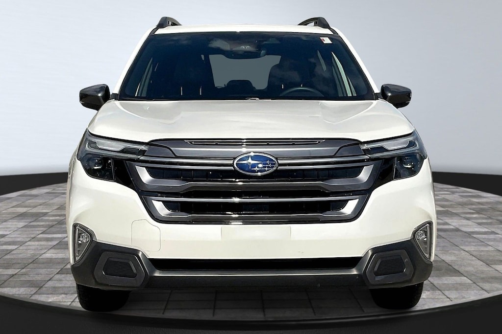 2025 Subaru Certified. Crystal White Pearl AWD Forester Limited Lineartronic CVT 4-Wheel Disc Brakes, 6 Speakers, ABS brakes, Air Conditioning, Alloy wheels, AM/FM radio: SiriusXM with 360L, Anti-whiplash front head restraints, Auto High-beam Headlights, Automatic temperature control, Brake assist, Bumpers: body-color, Driver door bin, Driver vanity mirror, Dual front impact airbags, Dual front side impact airbags, Electronic Stability Control, Exterior Parking Camera Rear, Four wheel independent suspension, Front anti-roll bar, Front Bucket Seats, Front Center Armrest, Front dual zone A/C, Front fog lights, Front reading lights, Fully automatic headlights, Heated door mirrors, Heated Front Bucket Seats, Heated front seats, Heated steering wheel, Illuminated entry, Knee airbag, Leather steering wheel, Low tire pressure warning, Occupant sensing airbag, Outside temperature display, Overhead airbag, Overhead console, Panic alarm, Passenger door bin, Passenger vanity mirror, Perforated Leather-Trimmed Upholstery, Power door mirrors, Power driver seat, Power Liftgate, Power moonroof: Panoramic, Power passenger seat, Power steering, Power windows, Radio data system, Rear anti-roll bar, Rear seat center armrest, Rear window defroster, Rear window wiper, Remote keyless entry, Security system, Speed control, Speed-sensing steering, Split folding rear seat, Spoiler, Steering wheel mounted audio controls, Tachometer, Telescoping steering wheel, Tilt steering wheel, Traction control, Trip computer, Turn signal indicator mirrors, Variably intermittent wipers, and Wheels: 18" x 7.0 J Dark Metallic Aluminum-Alloy.