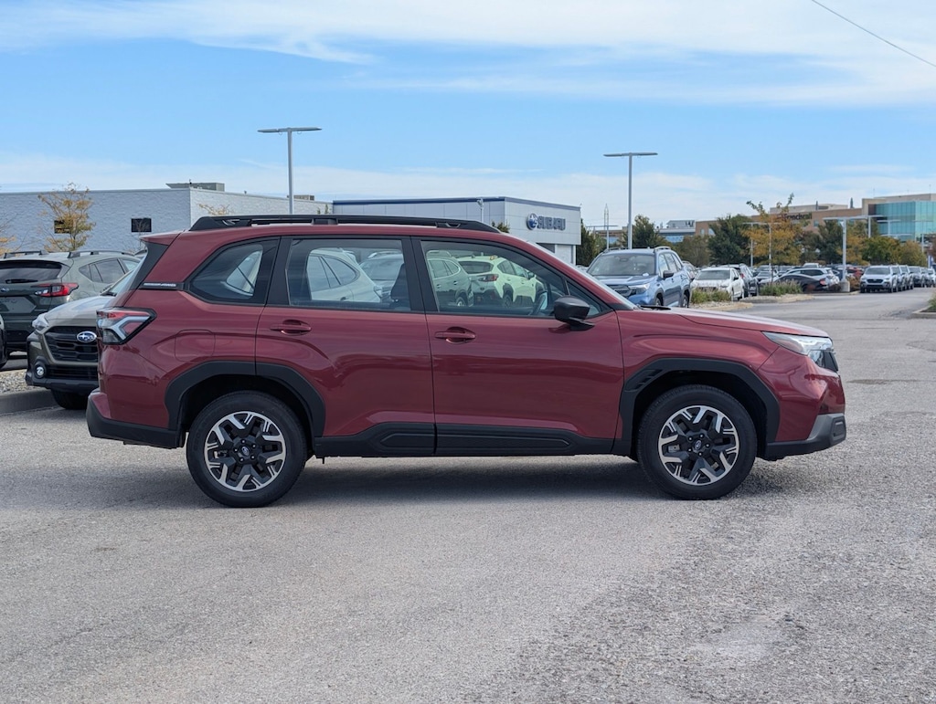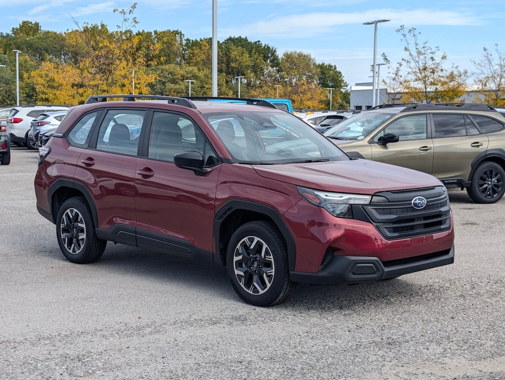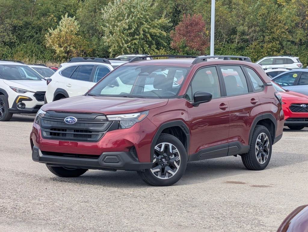 Priced below KBB Fair Purchase Price! 2025 Subaru Certified. Crimson Red Pearl AWD Forester Lineartronic CVT Odometer is 1987 miles below market average! Standard Model, 4 Speakers, 4-Wheel Disc Brakes, ABS brakes, Air Conditioning, All-Weather Floor Liners, Alloy wheels, AM/FM radio: SiriusXM, Anti-whiplash front head restraints, Auto High-beam Headlights, Automatic temperature control, Brake assist, Bumpers: body-color, Cargo Net, Cargo Tray, Driver door bin, Driver vanity mirror, Dual front impact airbags, Dual front side impact airbags, Electronic Stability Control, Exterior Parking Camera Rear, Four wheel independent suspension, Front anti-roll bar, Front Bucket Seats, Front Center Armrest, Front dual zone A/C, Front reading lights, Fully automatic headlights, Hexagonal Patterned Cloth Upholstery, Illuminated entry, Knee airbag, Low tire pressure warning, Occupant sensing airbag, Outside temperature display, Overhead airbag, Overhead console, Panic alarm, Passenger door bin, Passenger vanity mirror, Power door mirrors, Power steering, Power windows, Radio data system, Radio: Subaru Dual 7.0" Multimedia System, Rear anti-roll bar, Rear Bumper Cover, Rear Seatback Protector, Rear window defroster, Rear window wiper, Remote keyless entry, Security system, Speed control, Speed-sensing steering, Split folding rear seat, Spoiler, Steering wheel mounted audio controls, Tachometer, Telescoping steering wheel, Tilt steering wheel, Traction control, Trip computer, Variably intermittent wipers, and Wheels: 17" x 7.0 J Dark Metallic Aluminum-Alloy.