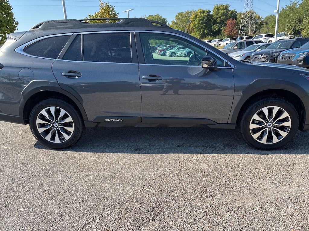 2025 Subaru Magnetite Gray Metallic AWD Outback Limited CVT Lineartronic 12 Speakers, 4-Wheel Disc Brakes, ABS brakes, Air Conditioning, Alloy wheels, AM/FM radio: SiriusXM with 360L, Auto High-beam Headlights, Auto-dimming Rear-View mirror, Automatic temperature control, Brake assist, Bumpers: body-color, Compass, Driver door bin, Driver vanity mirror, Dual front impact airbags, Dual front side impact airbags, Electronic Stability Control, Exterior Parking Camera Rear, Four wheel independent suspension, Front anti-roll bar, Front Bucket Seats, Front Center Armrest w/Storage, Front dual zone A/C, Front fog lights, Front reading lights, Fully automatic headlights, Garage door transmitter: HomeLink, harman/kardon® Speakers, Heated door mirrors, Heated Front Bucket Seats, Heated front seats, Heated rear seats, Heated steering wheel, HVAC memory, Illuminated entry, Knee airbag, Leather Shift Knob, Leather steering wheel, Low tire pressure warning, Memory seat, Navigation system: TomTom Navigation w/what3words, Occupant sensing airbag, Outside temperature display, Overhead airbag, Overhead console, Panic alarm, Passenger door bin, Passenger vanity mirror, Perforated Leather-Trimmed Upholstery, Power door mirrors, Power driver seat, Power Liftgate, Power moonroof, Power passenger seat, Power steering, Power windows, Rear anti-roll bar, Rear seat center armrest, Rear window defroster, Rear window wiper, Remote keyless entry, Roof rack, Security system, Speed control, Speed-sensing steering, Split folding rear seat, Spoiler, Steering wheel mounted audio controls, Tachometer, Telescoping steering wheel, Tilt steering wheel, Traction control, Trip computer, Turn signal indicator mirrors, Variably intermittent wipers, and Wheels: 18" x 7J Black Aluminum-Alloy.