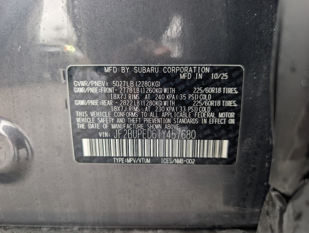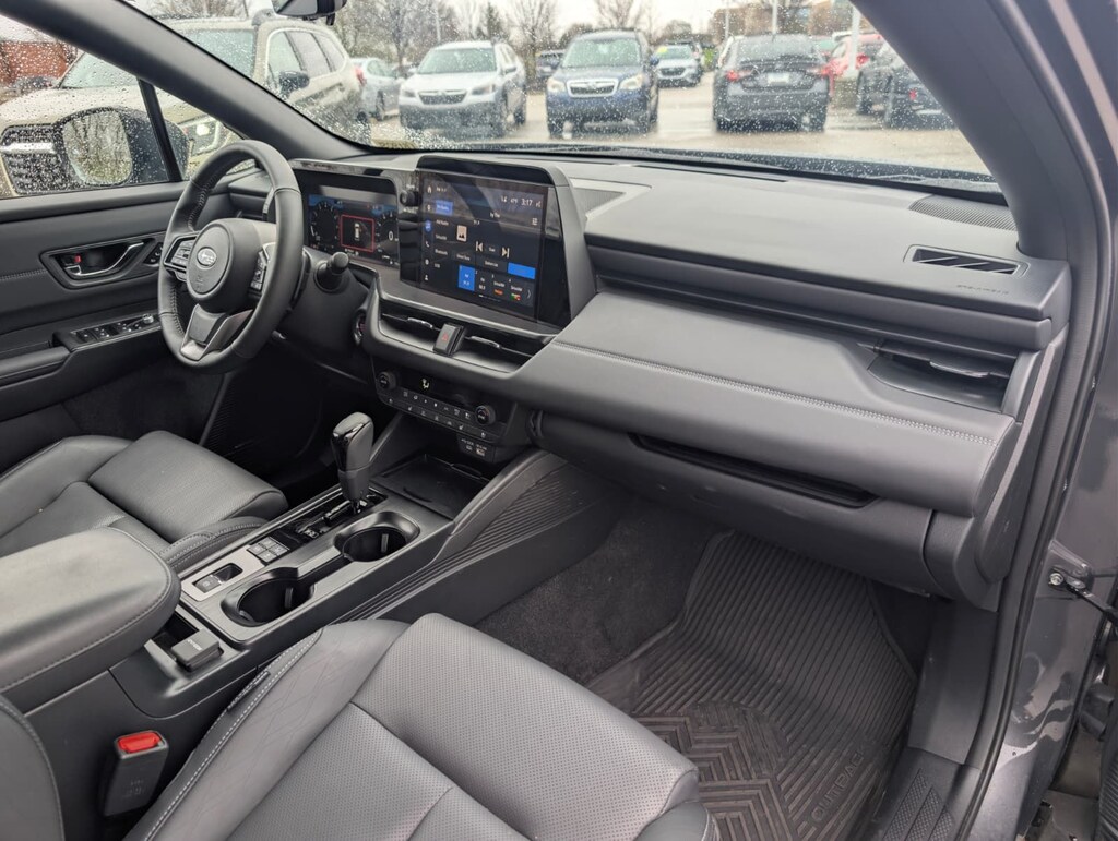 Recent Arrival! 2026 Subaru Certified. Gray AWD Outback Touring CVT Lineartronic 12 Speakers, 4-Wheel Disc Brakes, ABS brakes, Air Conditioning, Alloy wheels, AM/FM radio: SiriusXM with 360L, Anti-whiplash front head restraints, Auto High-beam Headlights, Auto-dimming Rear-View mirror, Automatic temperature control, Blind Spot Warning, Brake assist, Bumpers: body-color, Compass, Driver door bin, Driver vanity mirror, Dual front impact airbags, Dual front side impact airbags, Electronic Stability Control, Emergency communication system: MySubaru Companion (5-years free), Exterior Parking Camera Rear, Four wheel independent suspension, Front anti-roll bar, Front Bucket Seats, Front Center Armrest w/Storage, Front dual zone A/C, Front fog lights, Front reading lights, Fully automatic headlights, Garage door transmitter: HomeLink, harman/kardon® Speakers, Heated and Ventilated Front Bucket Seats, Heated door mirrors, Heated front seats, Heated rear seats, Heated steering wheel, HVAC memory, Illuminated entry, Knee airbag, Leather steering wheel, Low tire pressure warning, Memory seat, Nappa Leather-Trimmed Perforated Upholstery, Navigation system: MySubaru Navigator (1-year trial), Occupant sensing airbag, Outside temperature display, Overhead airbag, Overhead console, Panic alarm, Passenger door bin, Passenger vanity mirror, Power door mirrors, Power driver seat, Power Liftgate, Power moonroof, Power passenger seat, Power steering, Power windows, Radio: Subaru 12.1" Multimedia System with Navigation, Rain sensing wipers, Rear anti-roll bar, Rear seat center armrest, Rear window defroster, Rear window wiper, Remote keyless entry, Security system, Speed control, Speed-sensing steering, Split folding rear seat, Spoiler, Steering wheel mounted audio controls, Tachometer, Telescoping steering wheel, Tilt steering wheel, Traction control, Trip computer, Turn signal indicator mirrors, Variably intermittent wipers, Ventilated front seats, and Wheels: 18" x 7J Black Aluminum-Alloy.