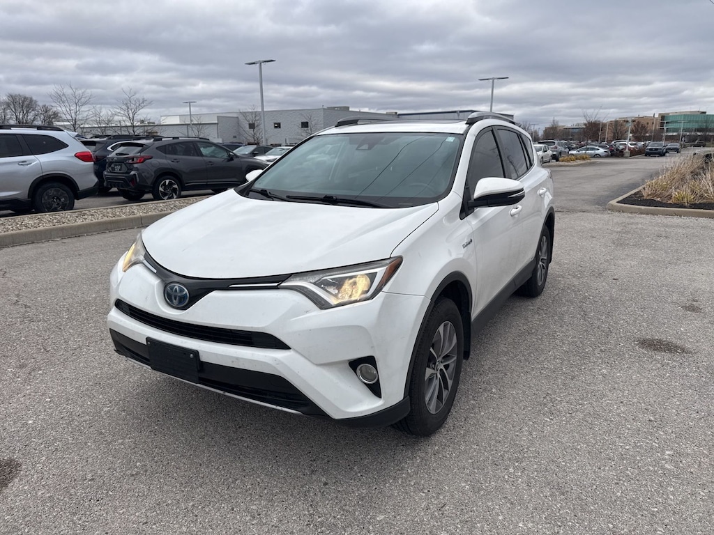 Recent Arrival! 2018 Toyota White AWD RAV4 Hybrid CVT 4-Wheel Disc Brakes, 6 Speakers, ABS brakes, Air Conditioning, Alloy wheels, AM/FM radio: SiriusXM, Auto High-beam Headlights, Automatic temperature control, Axle Ratio: 3.542, Brake assist, Bumpers: body-color, CD player, Driver door bin, Driver vanity mirror, Dual front impact airbags, Dual front side impact airbags, Electronic Stability Control, Exterior Parking Camera Rear, Fabric Seat Trim, Four wheel independent suspension, Front anti-roll bar, Front Bucket Seats, Front Center Armrest, Front dual zone A/C, Front fog lights, Front reading lights, Front Sport Seats, Fully automatic headlights, Heated door mirrors, Illuminated entry, Knee airbag, Leather steering wheel, Low tire pressure warning, Occupant sensing airbag, Outside temperature display, Overhead airbag, Overhead console, Panic alarm, Passenger door bin, Passenger vanity mirror, Power door mirrors, Power moonroof, Power steering, Power windows, Radio data system, Radio: Entune Audio Plus AM/FM/MP3/WMA Playback, Rear anti-roll bar, Rear seat center armrest, Rear window defroster, Rear window wiper, Remote keyless entry, Roof rack, Speed control, Speed-sensing steering, Split folding rear seat, Spoiler, Steering wheel mounted audio controls, Telescoping steering wheel, Tilt steering wheel, Traction control, Trip computer, Turn signal indicator mirrors, Variably intermittent wipers, and Wheels: 17" x 7.0J 5-Spoke Alloy.